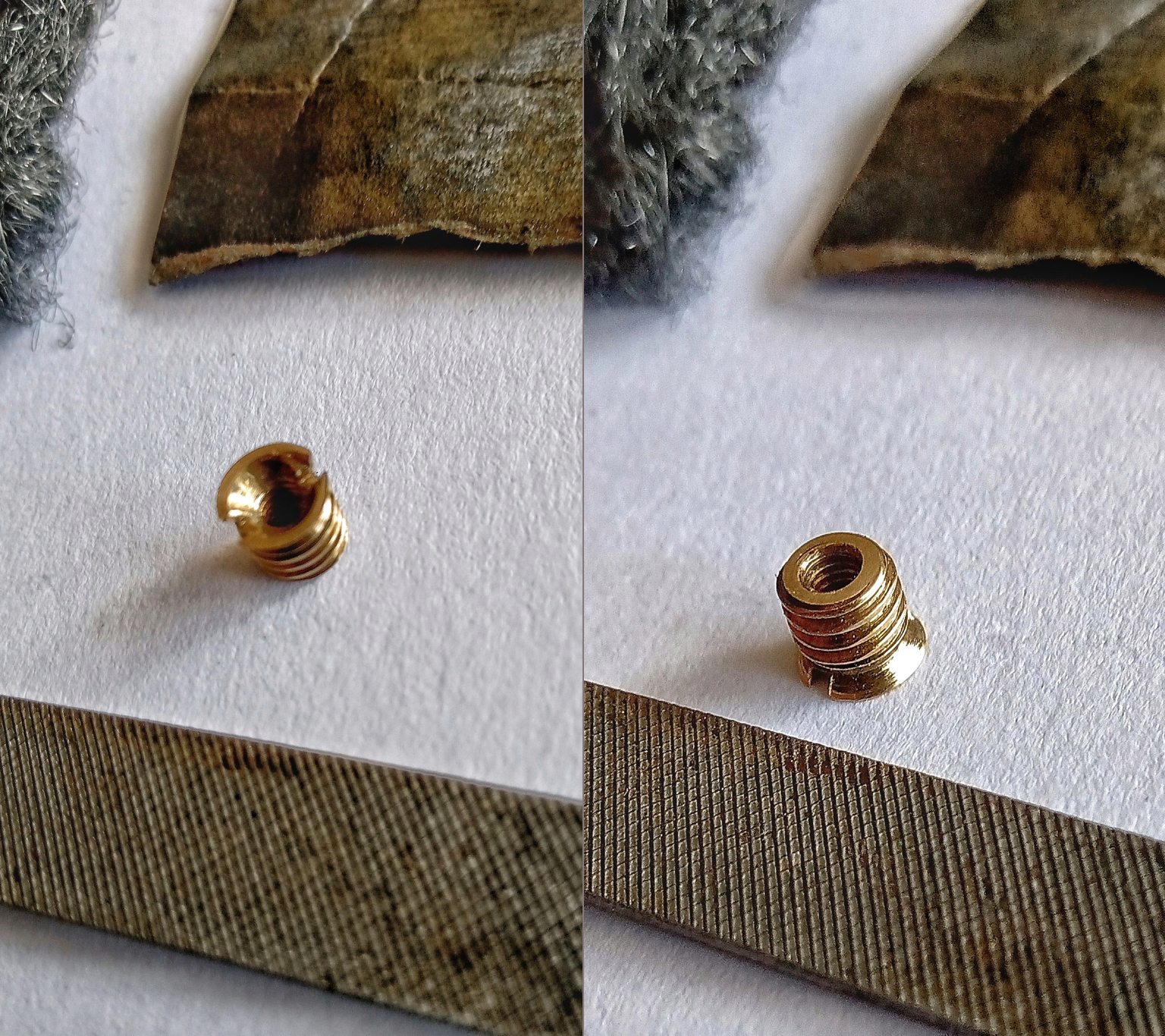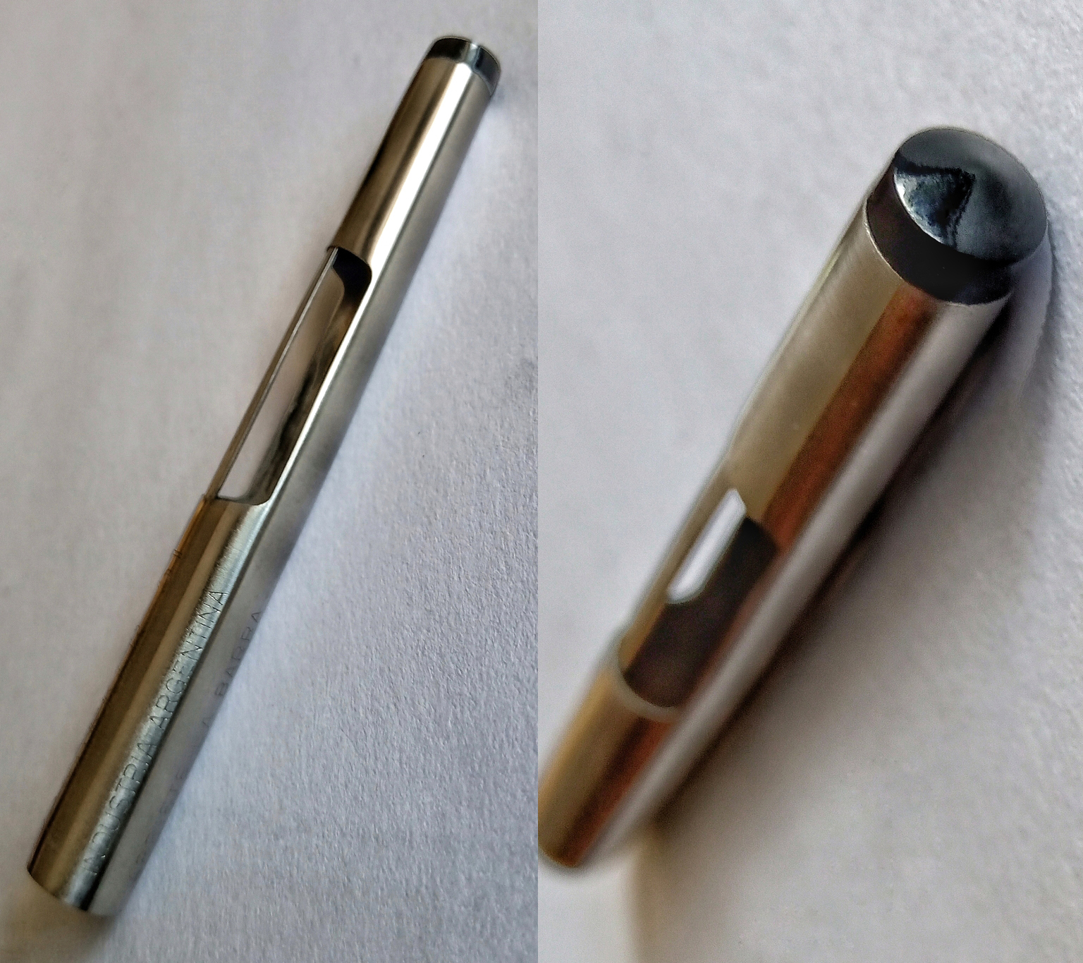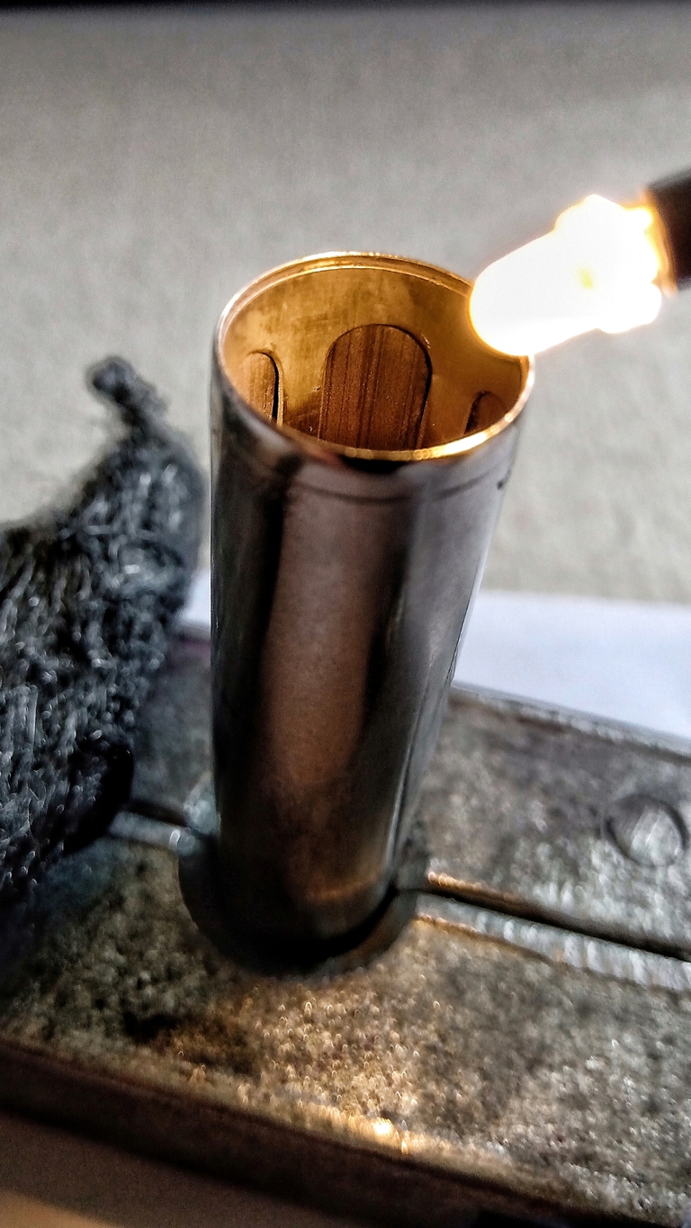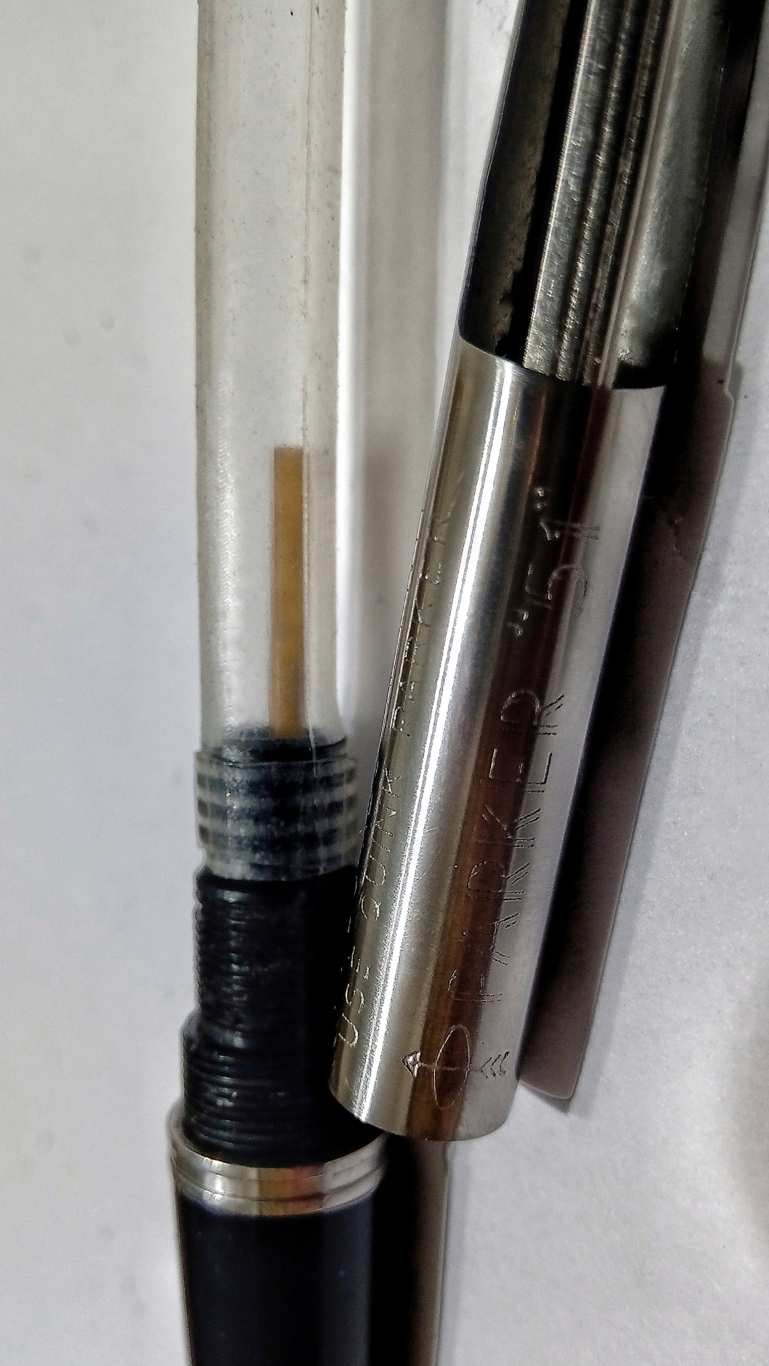The cap, as well as the sleeve of the ink bag, required a deep internal cleaning, so that a fine steel wool was used to clean and polish the interiors...