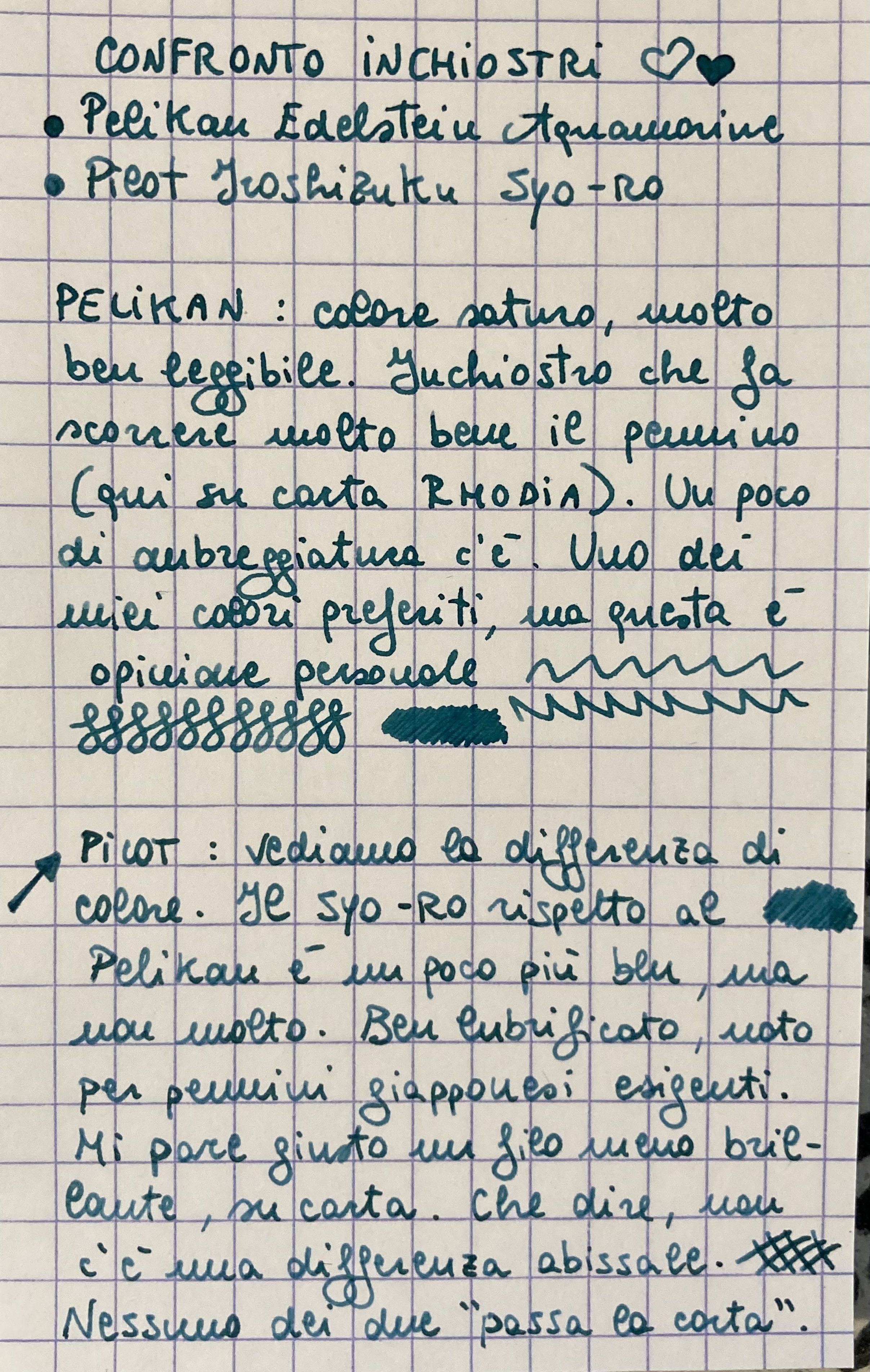 Confronto inchiostri Pelikan Edelstein Aquamarine e Pilot Iroshizuku Syo-Ro