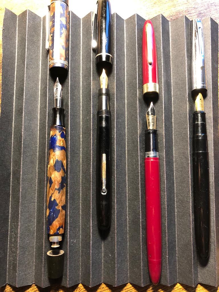 Buonasera a tutti, ho 'vinto' queste penne ad un'asta dal vivo e pur non essendo delle rarita' per 20 Sterline mi pare un buon prendere, sopratutto la Sheaffer's Saratoga. Rimesse tutte a nuovo.