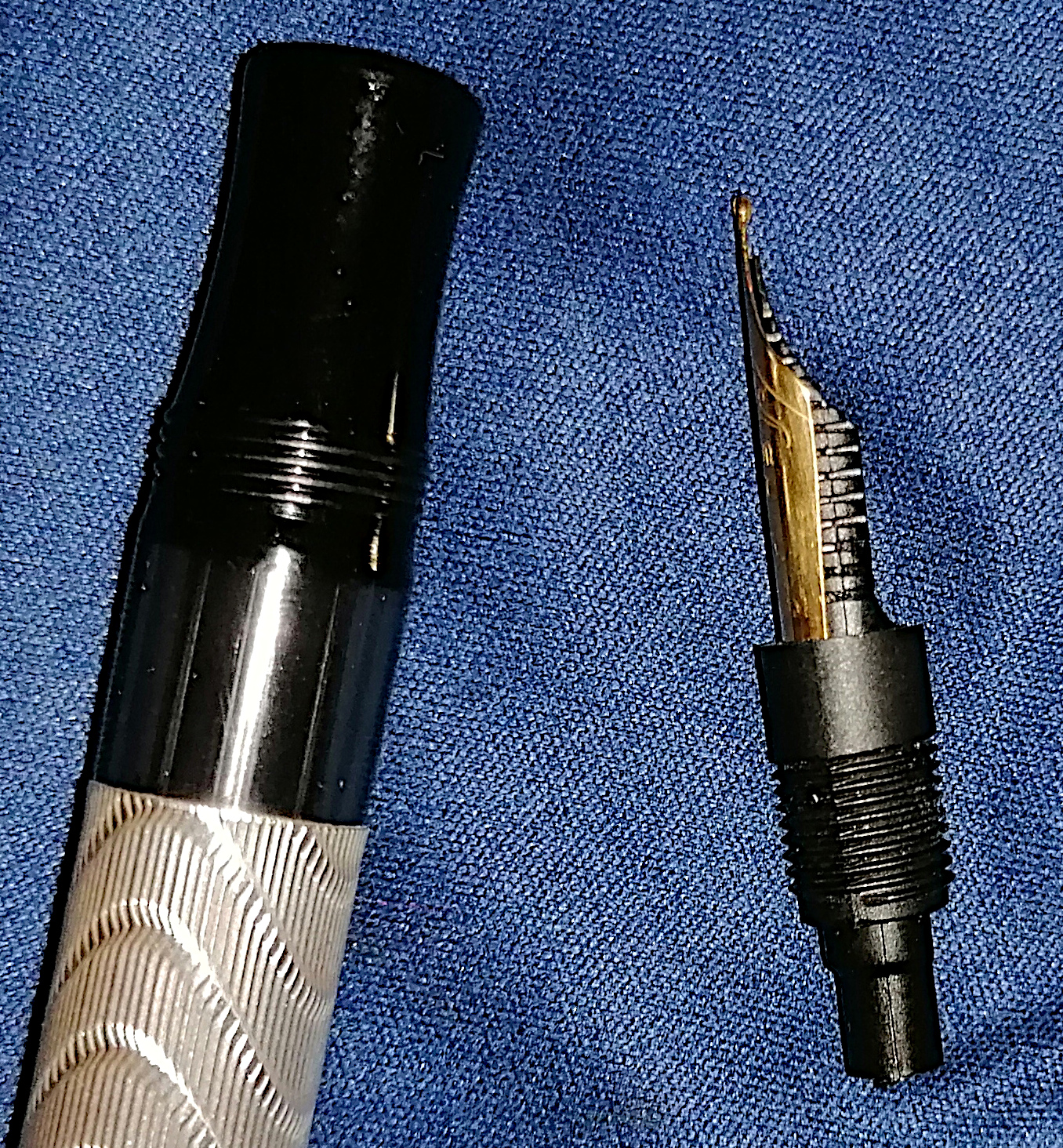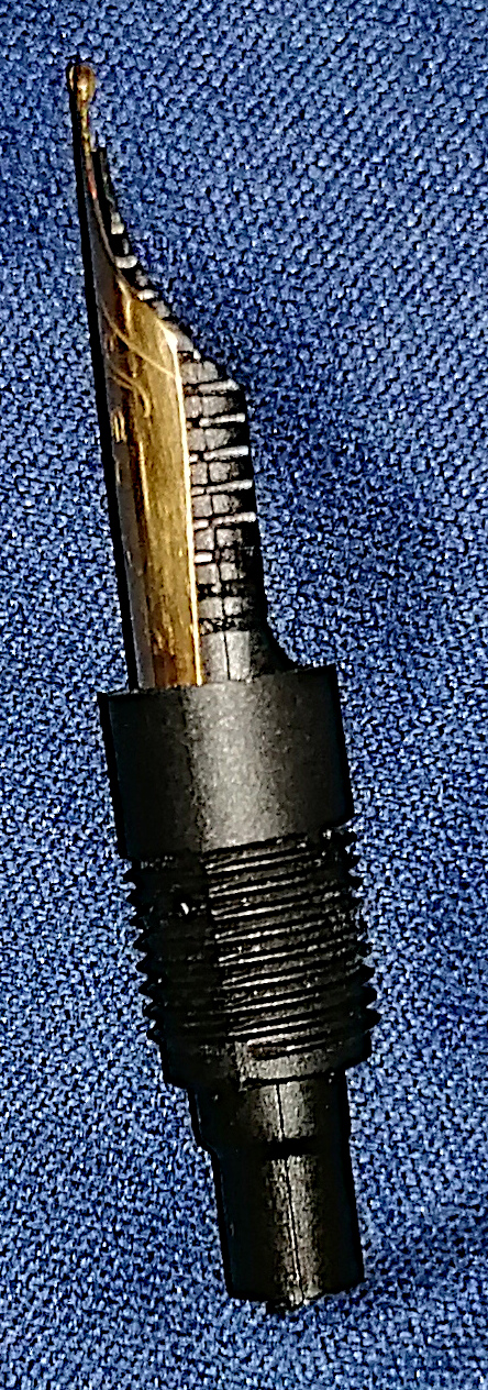 Effettivamente il pennino porta una scitta con un font che non ricordo aver visto altrove e, una volta smontato, alla sua base non porta alcun altro marchio.