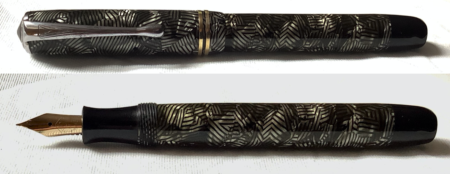 Non ho idea di come si chiami questo particolare disegno della celluloide, ma sicuramente farebbe la felicità di un esperto in dattiloscopia: sembrano così tante impronte digitali impresse a casaccio una sull'altra, che non c'è paura di lasciarci le ditate sopra la penna.