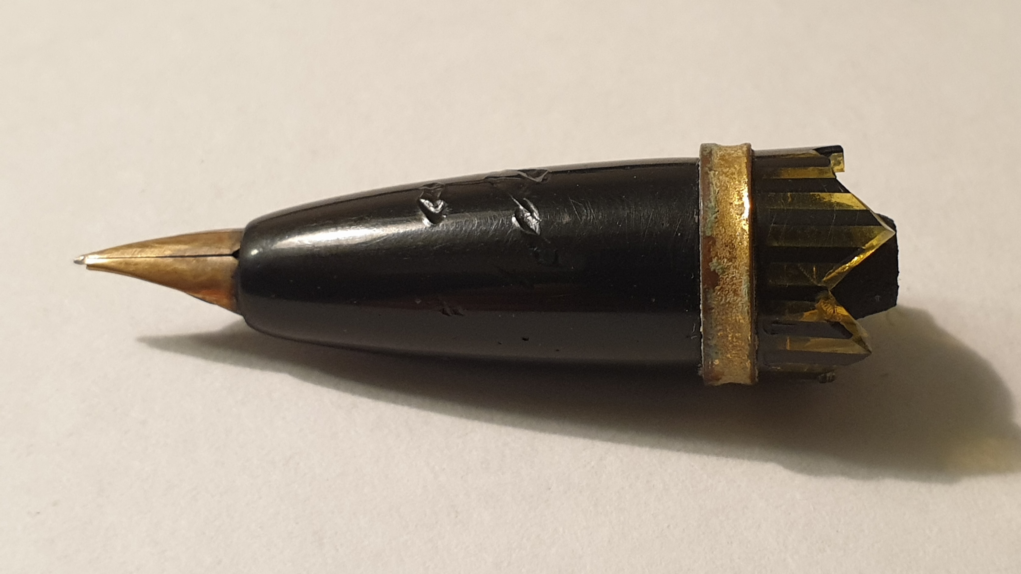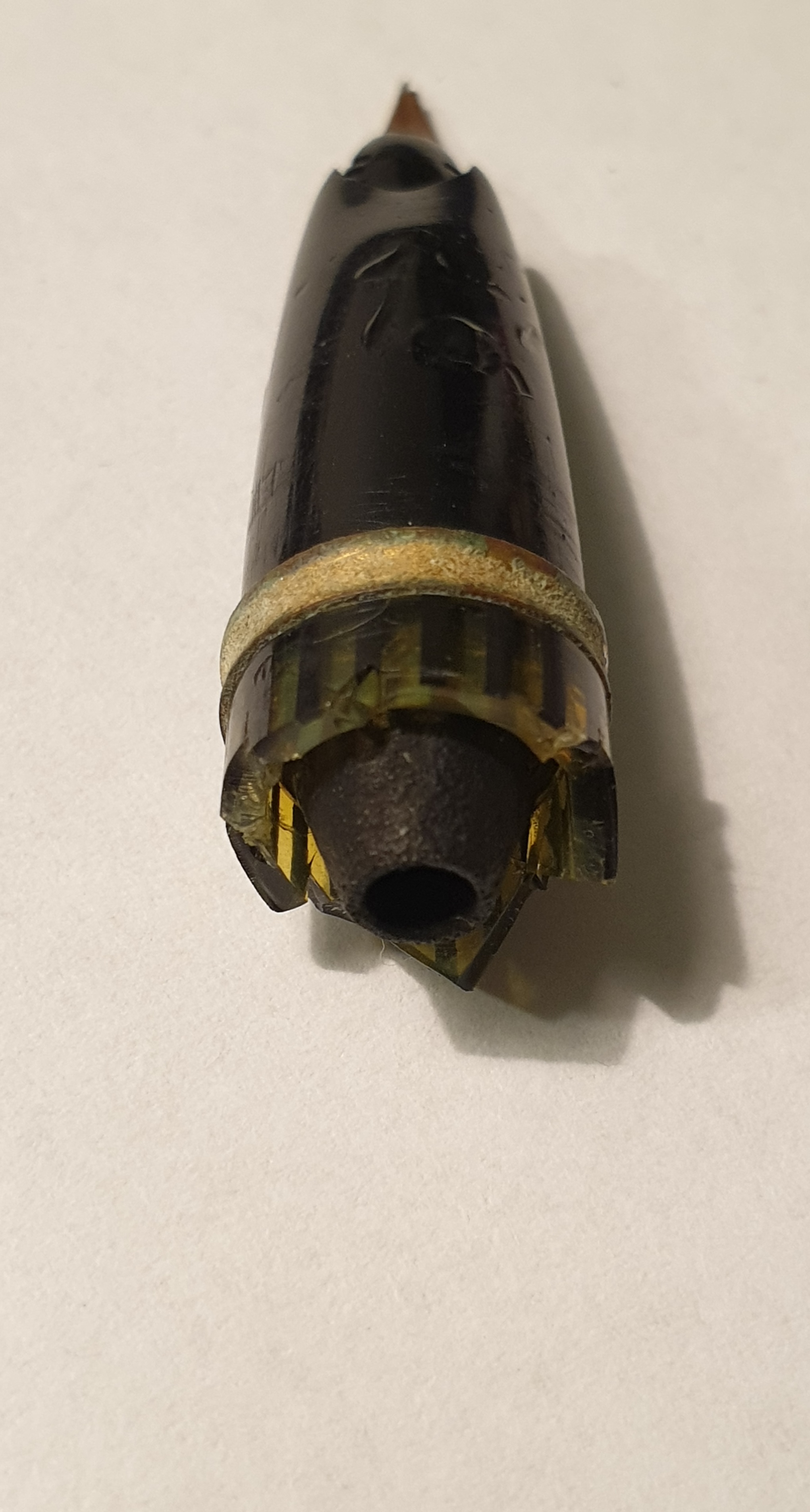 Il fondello della sezione entra a pressione nel foro del conduttore e immagino che, quando la penna era integra, servisse ad ospitare una piccola cannuccia. :thumbup: