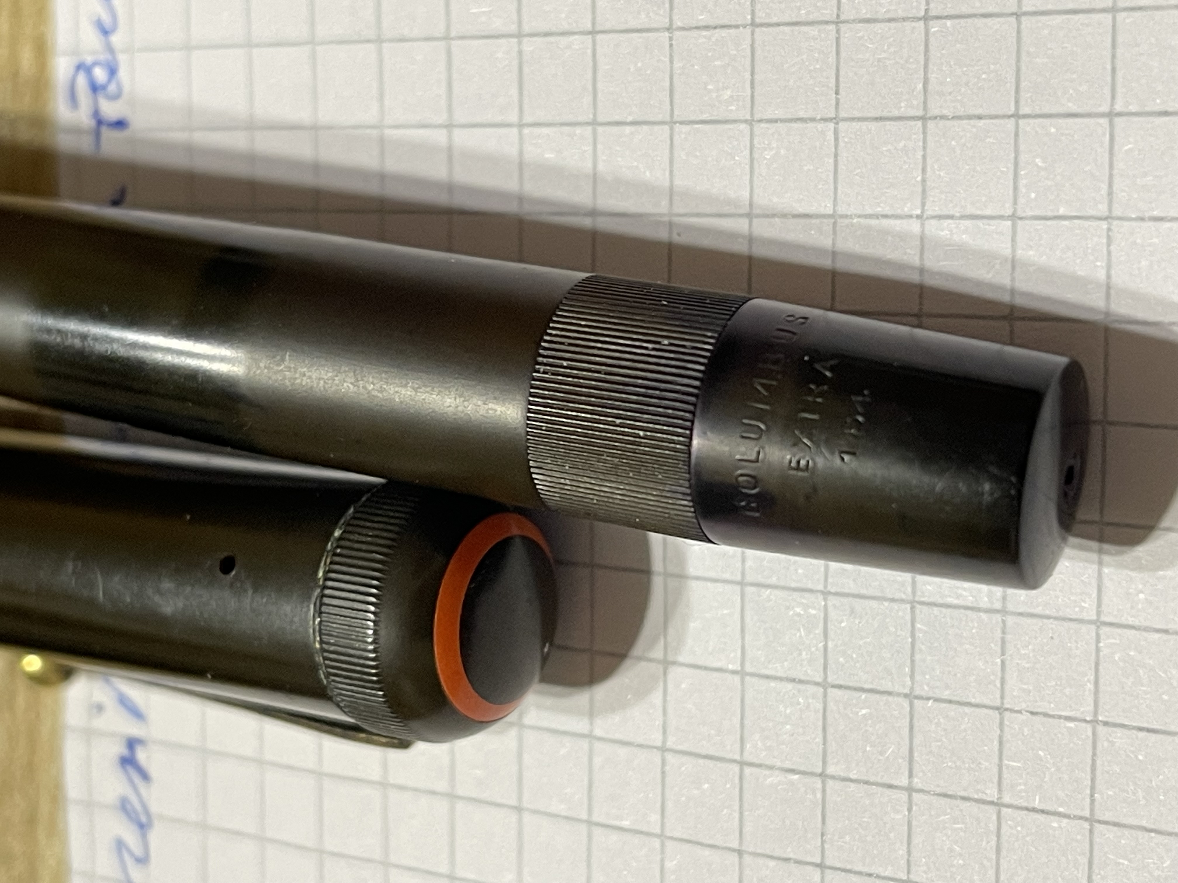 Buongiorno a tutti. MI potete aiutare nel datare questa Columbus extra regalatami da mio fratello? La penna scrive magnificamente ed ha il caricamento dall'alto. Unica pecca la sua autonomia e il dover stare attento quando la si apre dovendo rivolgerla con il pennino all'insu. Vi posto alcune foto fatte con il cellulare. Grazie