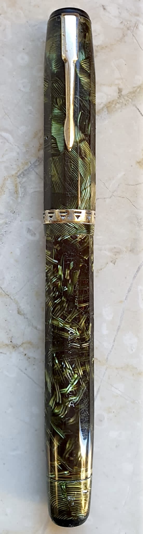 Radius anni ‘30 con caricamento a pompa; celluloide del corpo penna, trasparente.