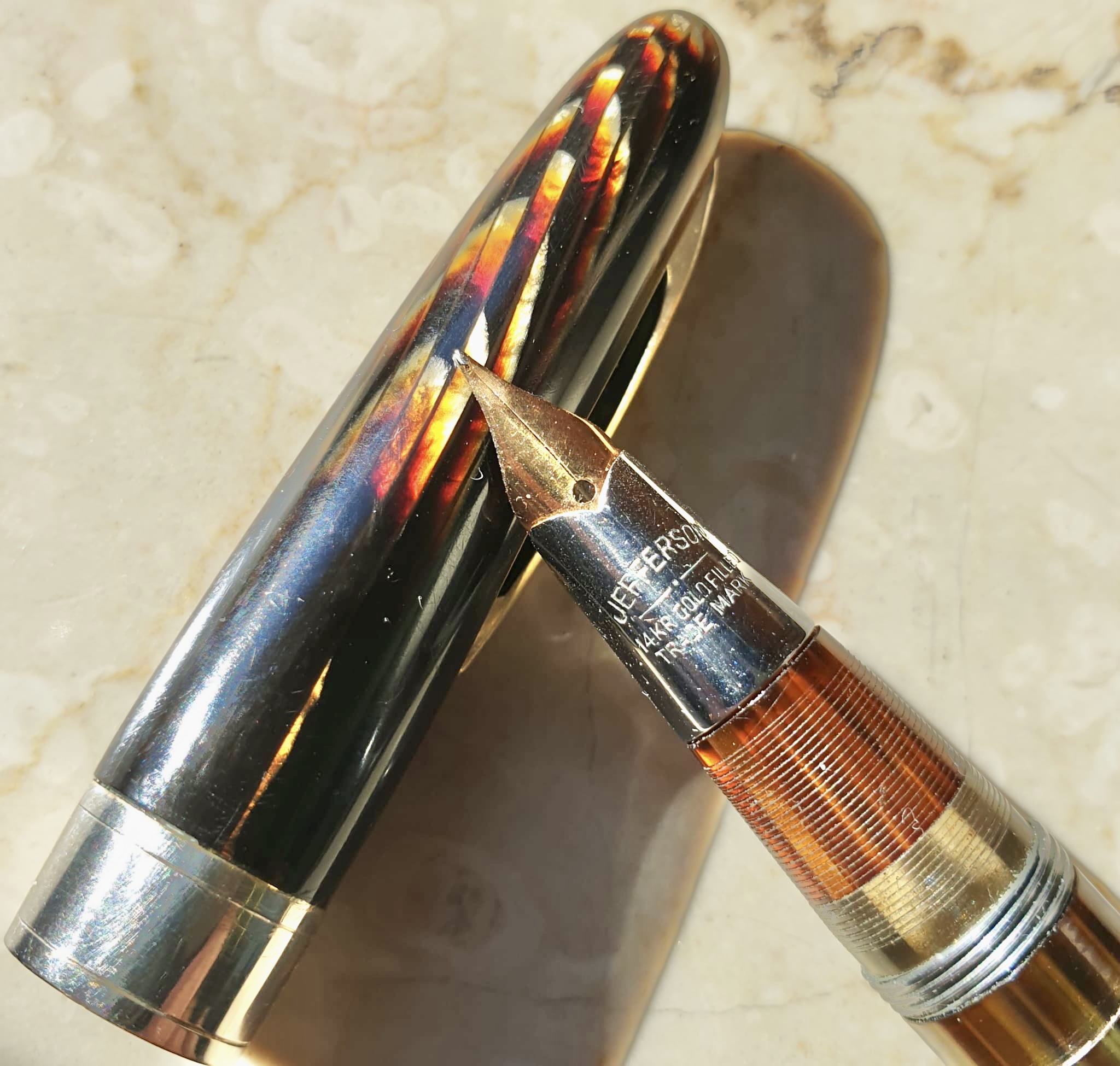 Pur essendo tutta originale porta O.P.S.sulla penna e Jefferson sul pennino.Nessuna registrazione ufficiale,probabile escamotage per depistare ricerche atte a perseguire lo..Sheaffer/imitatore...