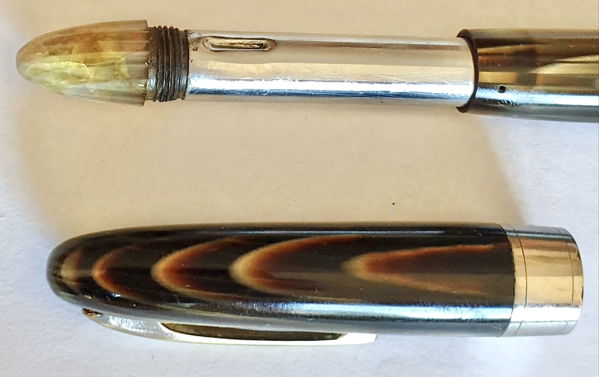 Il pennino è in due pezzi, vero? Un pennino "tradizionale" incapsulato in una specie di cerchio metallico che fa assomigliare il tutto a un pennino triumph. O sbaglio?