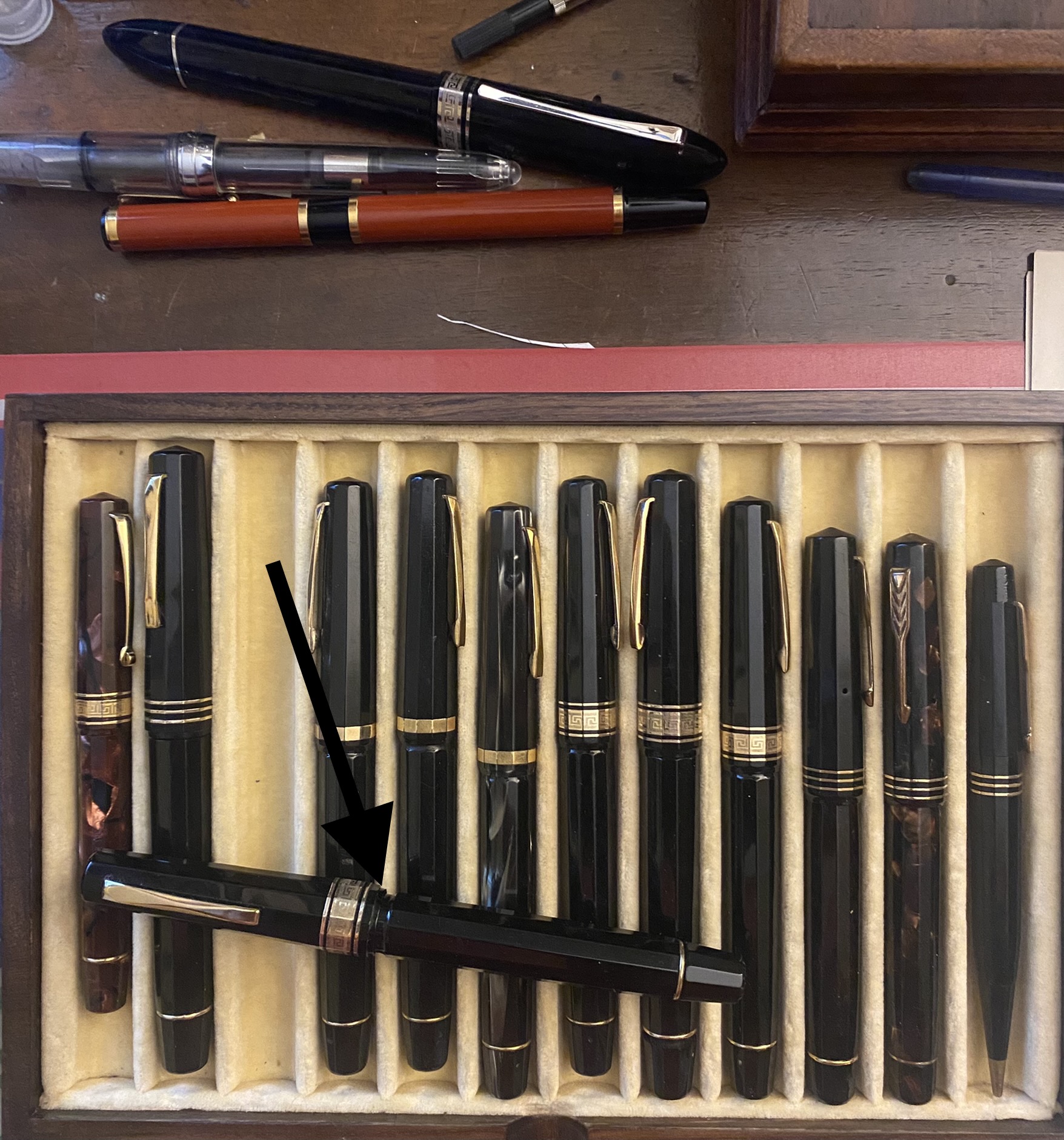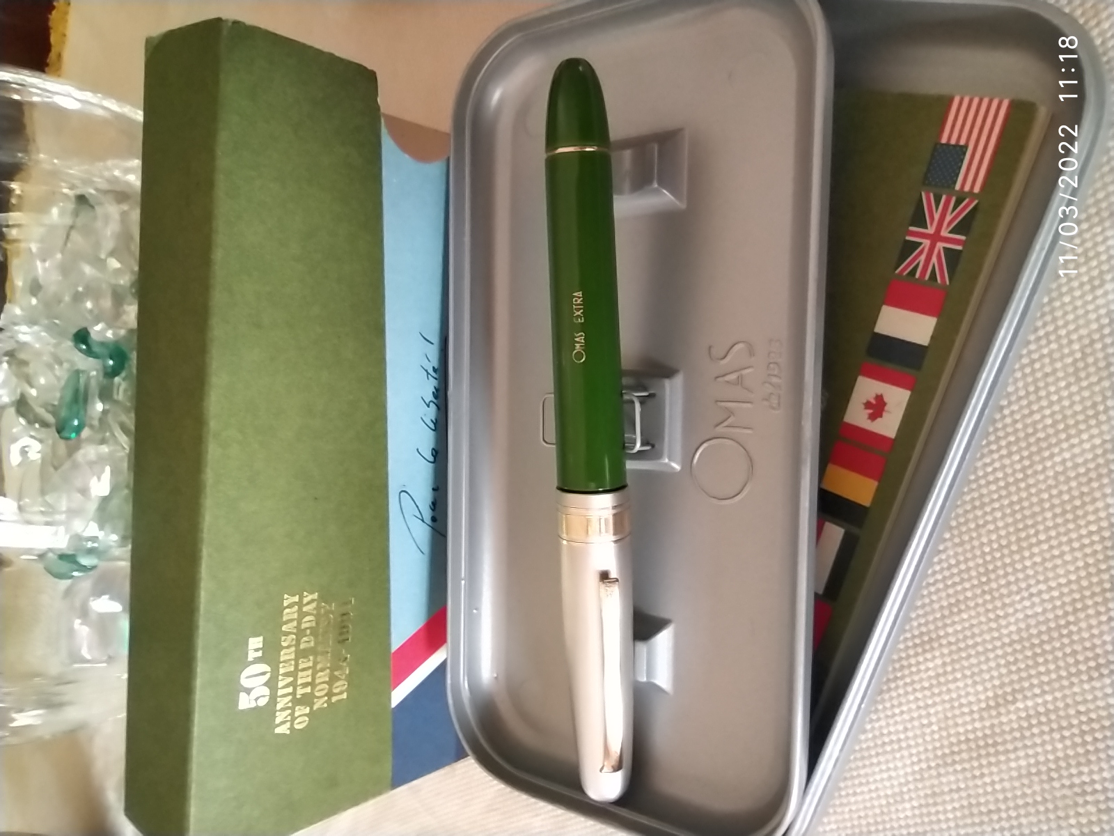 La stilo su cui sono intervenuto è una Omas Extra Cinquantenario D-Day acquistata quale fondo magazzino, anzi era "fondo di vetrina" perchè lasciata in esposizione per diversi anni e poi per fortuna riposta in un cassettone del negozio. La penna è in resina vegetale e quando l'ho acquistata, sebbene nuova perchè mai usata, aveva segni di ossidazione sul cappuccio e soprattutto chiari segni di scolorimento rispetto al punto in cui è stata lasciata inserita nella molletta di ferro della sua confezione ed alla parte sottostante evidentemente perchè non esposta alla luce. Il cappuccio ed il pennino (in oro quest'ultimo) li ho lucidati con il sidol in maniera molto leggera soprattutto sul cappuccio perchè laccato. Per il fusto ho proceduto con pasta iosso sempre in maniera molto leggera,primo per salvaguardare il colore della scritta impressa sul fusto e poi perchè non c'erano graffi o segni da togliere. Al termine ho passato un panno morbido per togliere le tracce della pasta iosso. Infine ho passato sul fusto il lucidante al silicone della WD40 (per la precisione ho messo il lucidante su un panno ed ho atteso un paio di minuti che evaporasse il propellente della bomboletta prima di passarlo sulla penna). Il risultato è stato molto soddisfacente come potrai vedere dalle foto che allego (ho dovuto trattare anche la scatola in metallo laccato) . Devi tener presente che sulla tua stilo ci sono materiali diversi che reagiscono in maniera diversa (oro, placcature, resina vegetale) e se decidi di procedere la prima cosa che devi abbondonare è la fretta. Comunque dalle foto che hai messo il problema della scoloritura e solo vicino al fondello: io la terrei così. Per il pennino e le altre placcature, come ti è stato già detto, un panno da gioielliere ti assicura anche un margine di sucurezza casomai dovessi insistere oltre il necessario sulle parti da trattare (il panno da gioielliere costa molto ma altro non è che un panno imbevuto di cera lucidante "rosso di parigi" di più facile reperimento e molto più economica).