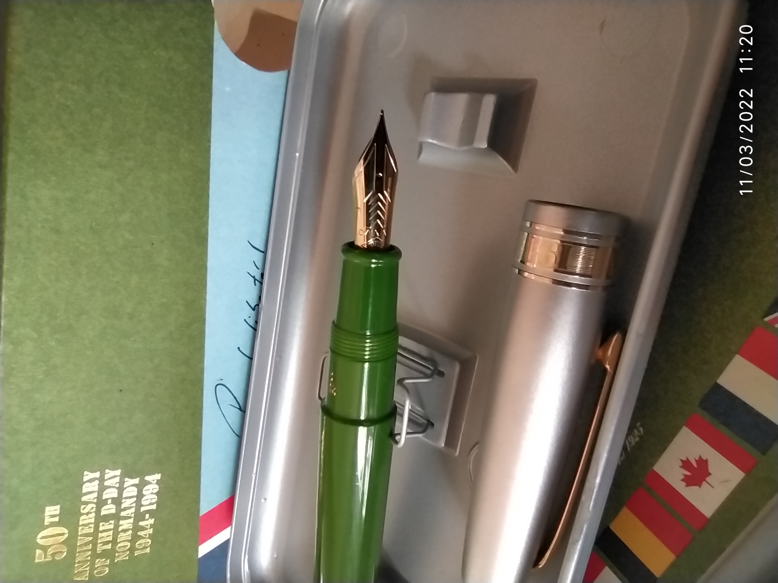 Il pennino è l'unico sul quale puoi insistere perchè è in oro 14k, con il Sidol diventa giallo chiaro, ma le finiture della penna sono di un oro che sembra rosato, per cui potrebbe diventare troppo giallo... (poi si ossida di nuovo comunque).