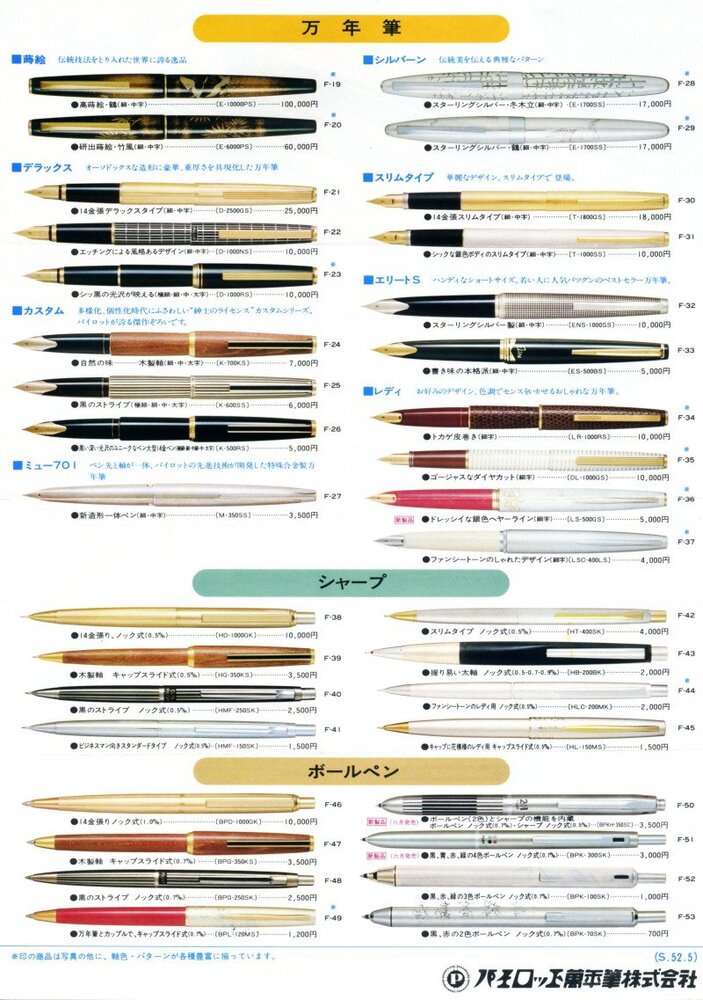 Girando in giro ho trovato 2 pagine di un catalogo Pilot anno 1970 che condivido.