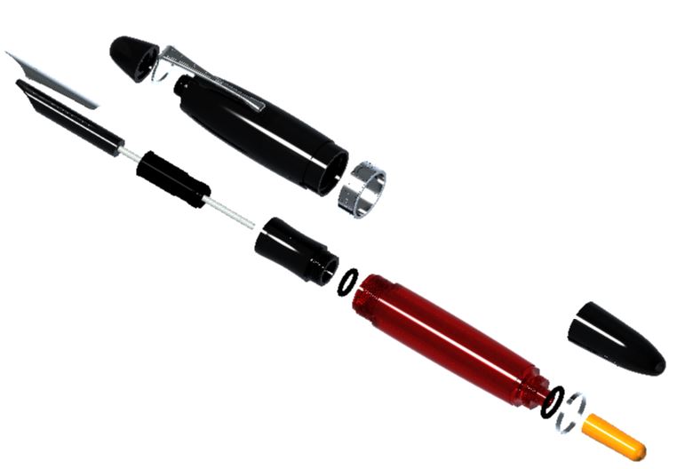 Per garantire la massima tenuta contro le eventuali perdite di inchiostro e permettere la facilità di manutenzione sono stati impiegati due O-ring, uno fra la sezione ed il serbatoio, ed uno sul fondello.