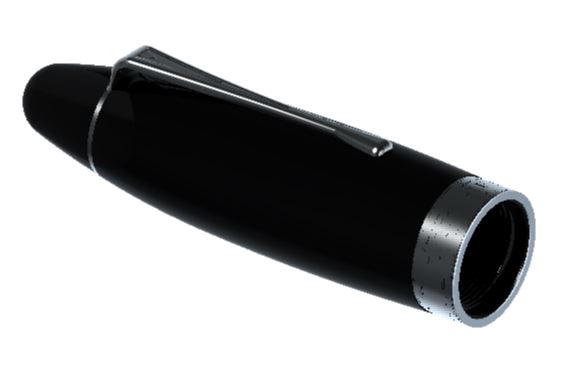 C'era il desiderio di eliminare lo scalino tra fusto e sezione che spesso si vede nelle penne odierne. Ma usare un portacondotto standard obbliga a una certa dimensione della sezione, che obbliga a un certo diametro del fusto che obbliga a un certo diametro del cappuccio. Che infine risulta in una penna troppo grossa e sgraziata ma senza scalino.