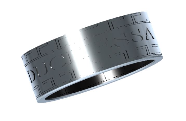 La decorazione, di gusto etrusco, verrà portata a termine con tre passaggi di laser a fibra a quattro assi più un passaggio finale di “pulizia”.