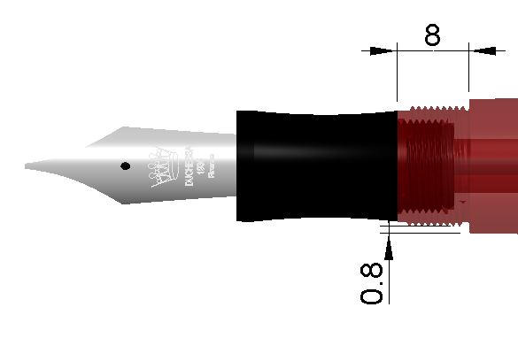C'era il desiderio di eliminare lo scalino tra fusto e sezione che spesso si vede nelle penne odierne. Ma usare un portacondotto standard obbliga a una certa dimensione della sezione, che obbliga a un certo diametro del fusto che obbliga a un certo diametro del cappuccio. Che infine risulta in una penna troppo grossa e sgraziata ma senza scalino.