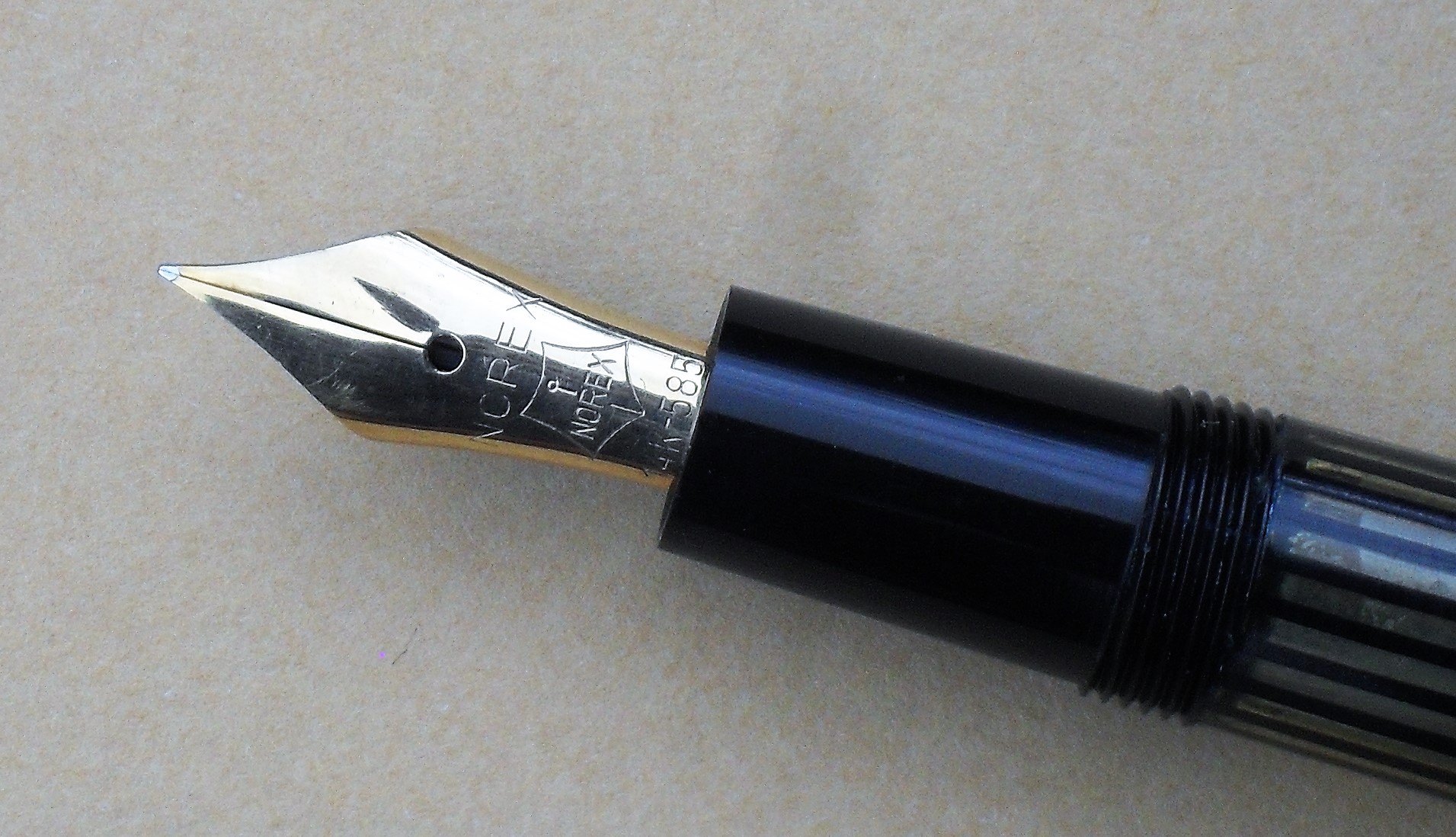 Bello il pennino in oro a 14 carati, n. 26, e molto efficiente la clip con meccanismo interno a molla.