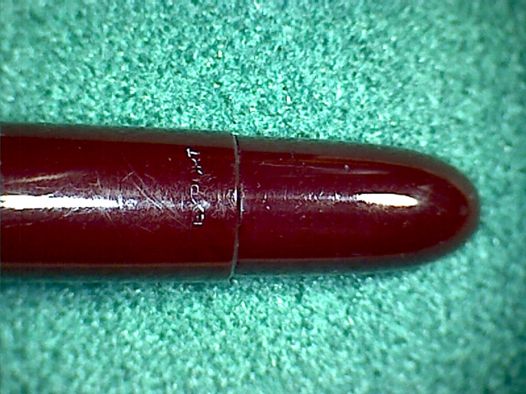 amaranto, scritta Export sul fusto, sulla vera + (croce) Pelikan 140 Germany, logo sul cappuccio, pennino con logo linee chiuse;
