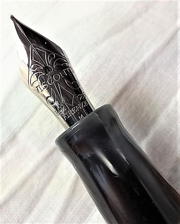 Questa penna stilografica è stata prodotta da Visconti a Firenze ed è fatta di una celluloide grigia marmorizzata degli anni '30.