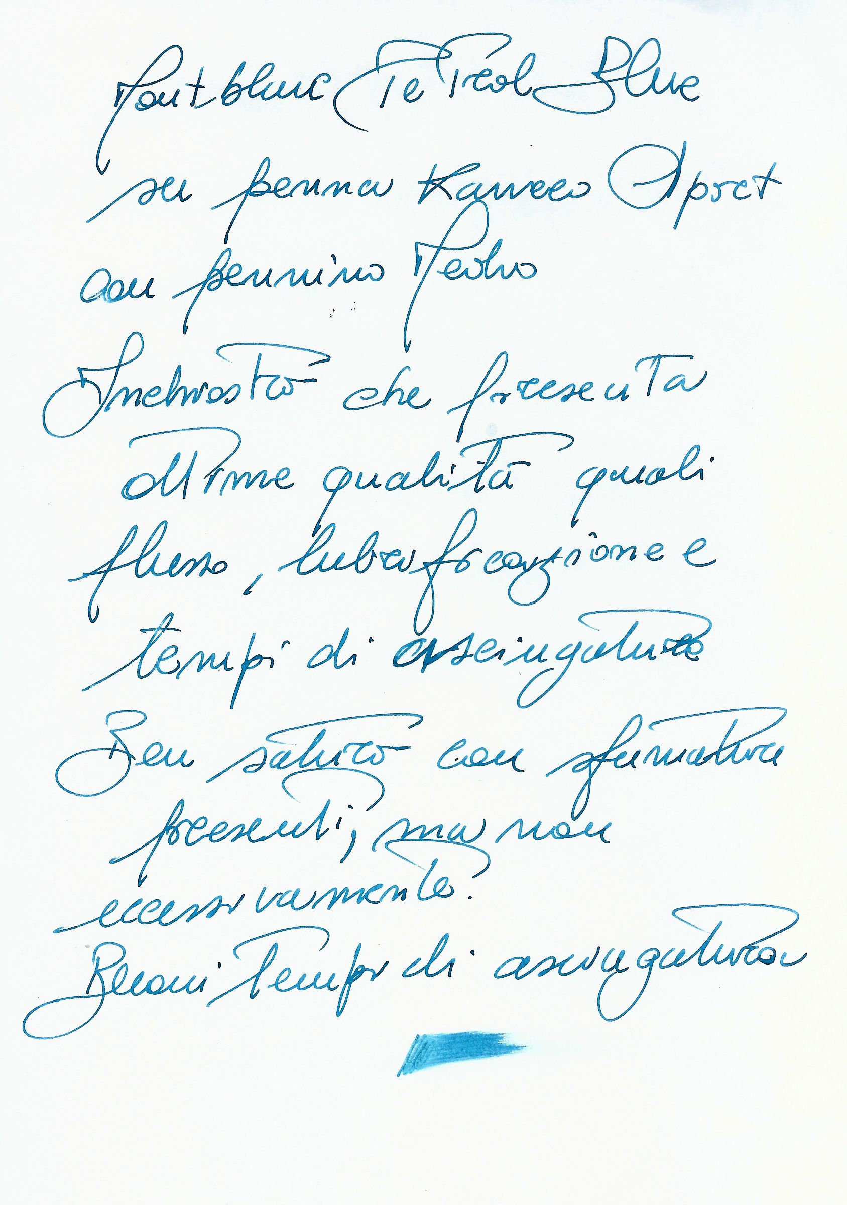 Grazie della recensione. Speravo qualcuno la potesse fare perché è un’inchiostro che avevo adocchiato...non fosse, come da te evidenziato, per il prezzo elevato del flacone. È un bel colore e ha delle buone caratteristiche.