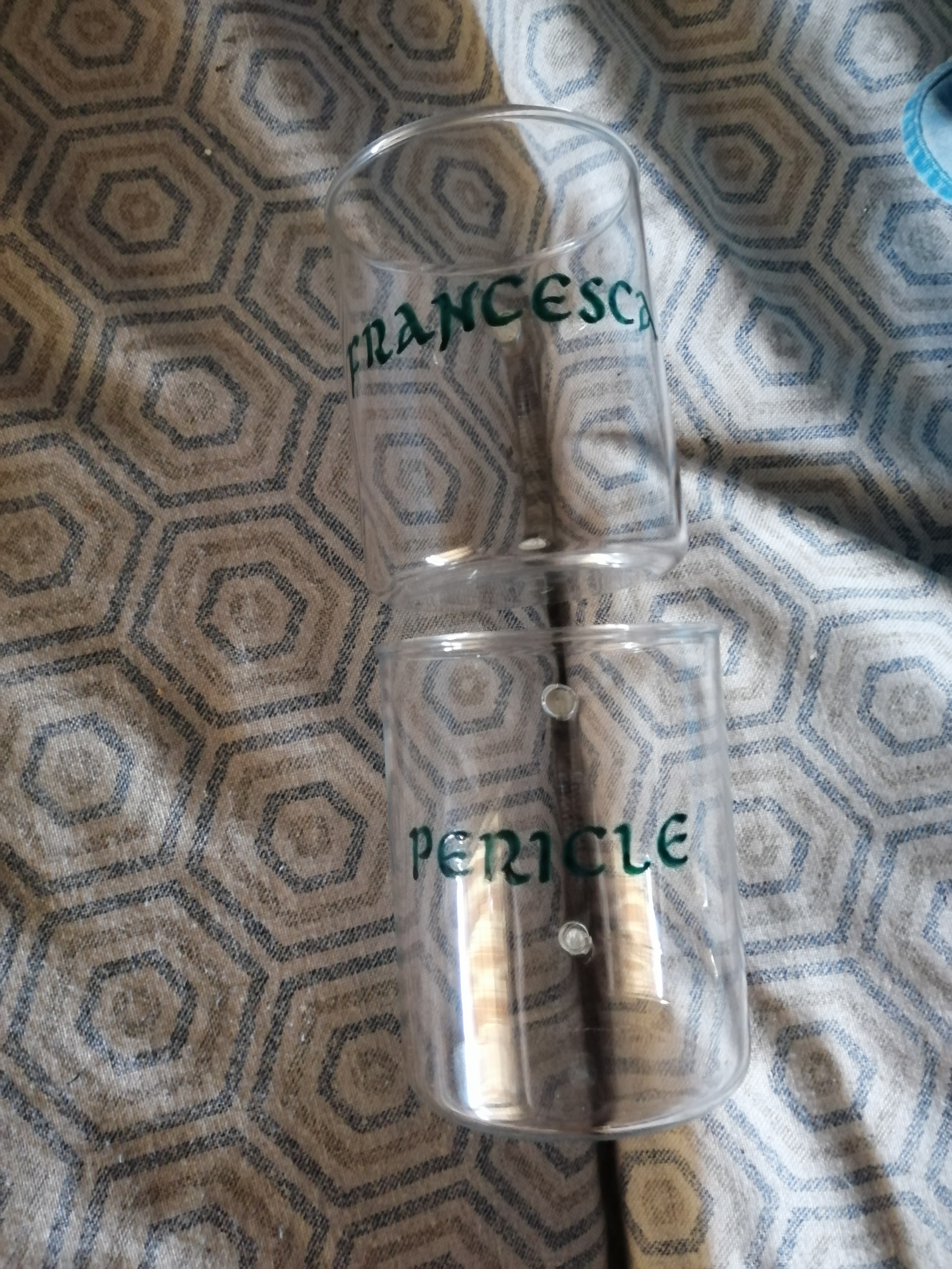 Il pennarello é troppo trasparente rispetto a quello che immaginavo e non riesco a ripassarlo, l'oro in tubetto non riesco a distribuirlo in modo omogeneo e il viola in barattolo da usare con pennello é molto denso e scrivendolo con pennello lascia strisciate, mentre dipingendo le lettere con un pennello sottile non é preciso e mi fa impazzire.