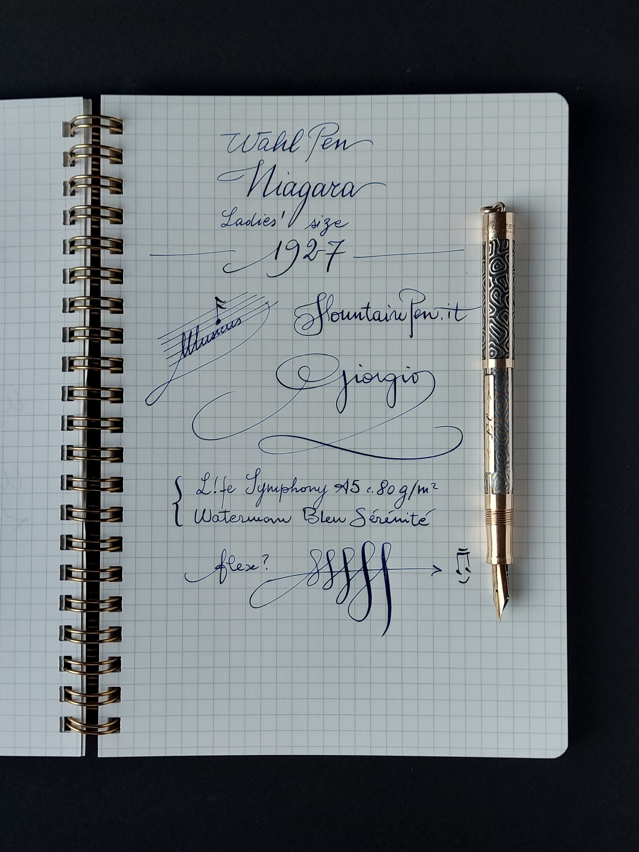 Per quanto concerne il Modello oggetto della recensione odierna, mi è stato possibile riconoscerlo con assoluta certezza solo grazie ad una pagina estratta dal Catalogo generale Wahl-Eversharp del 1927/1928 pubblicata alcuni anni or sono da Syd Saperstein (Wahlnut) in un intervento su FPN (pagina che oggi mi appare non più disponibile) in risposta ad un quesito sull’argomento proposto da Jim Mamoulides.