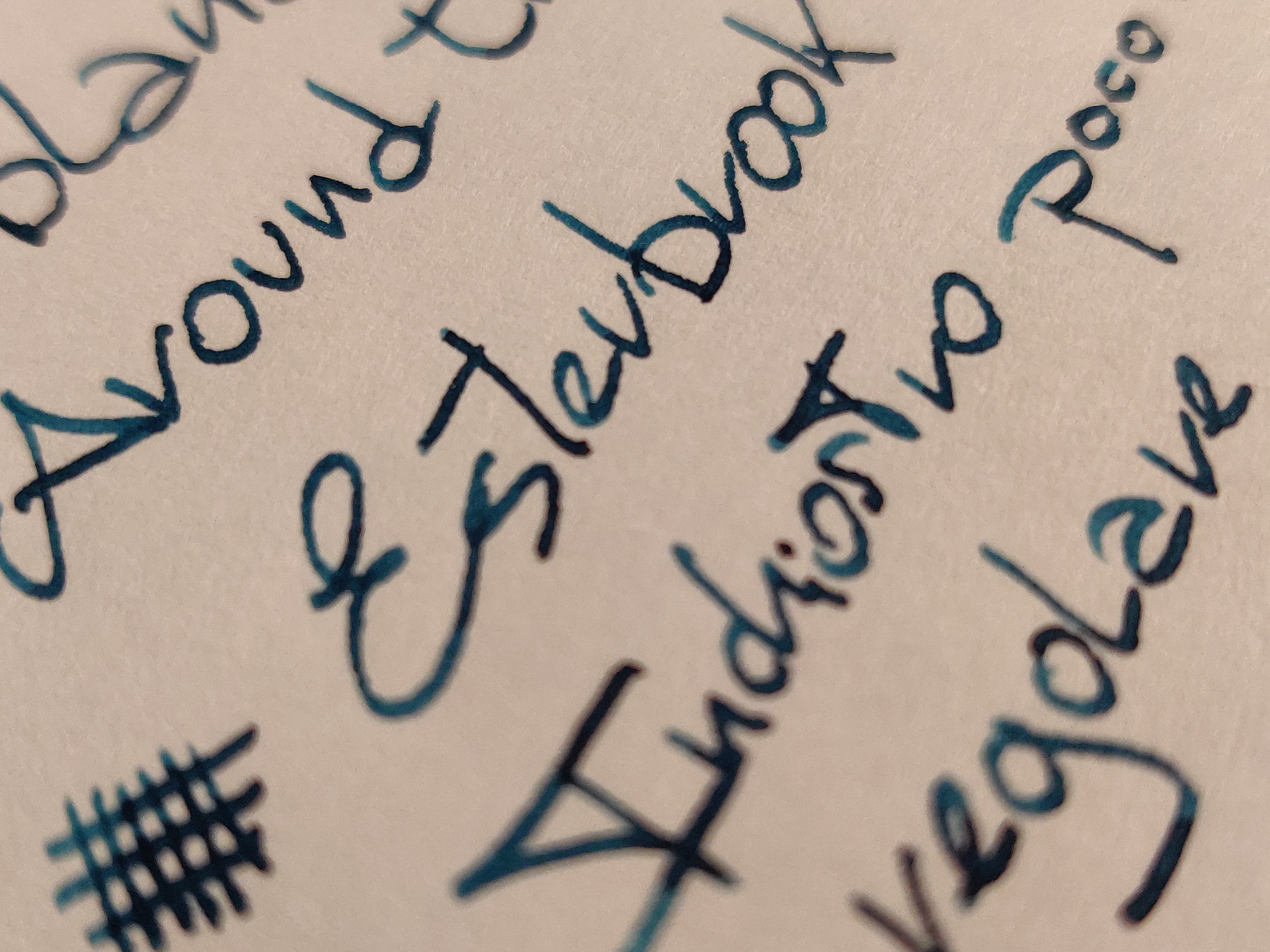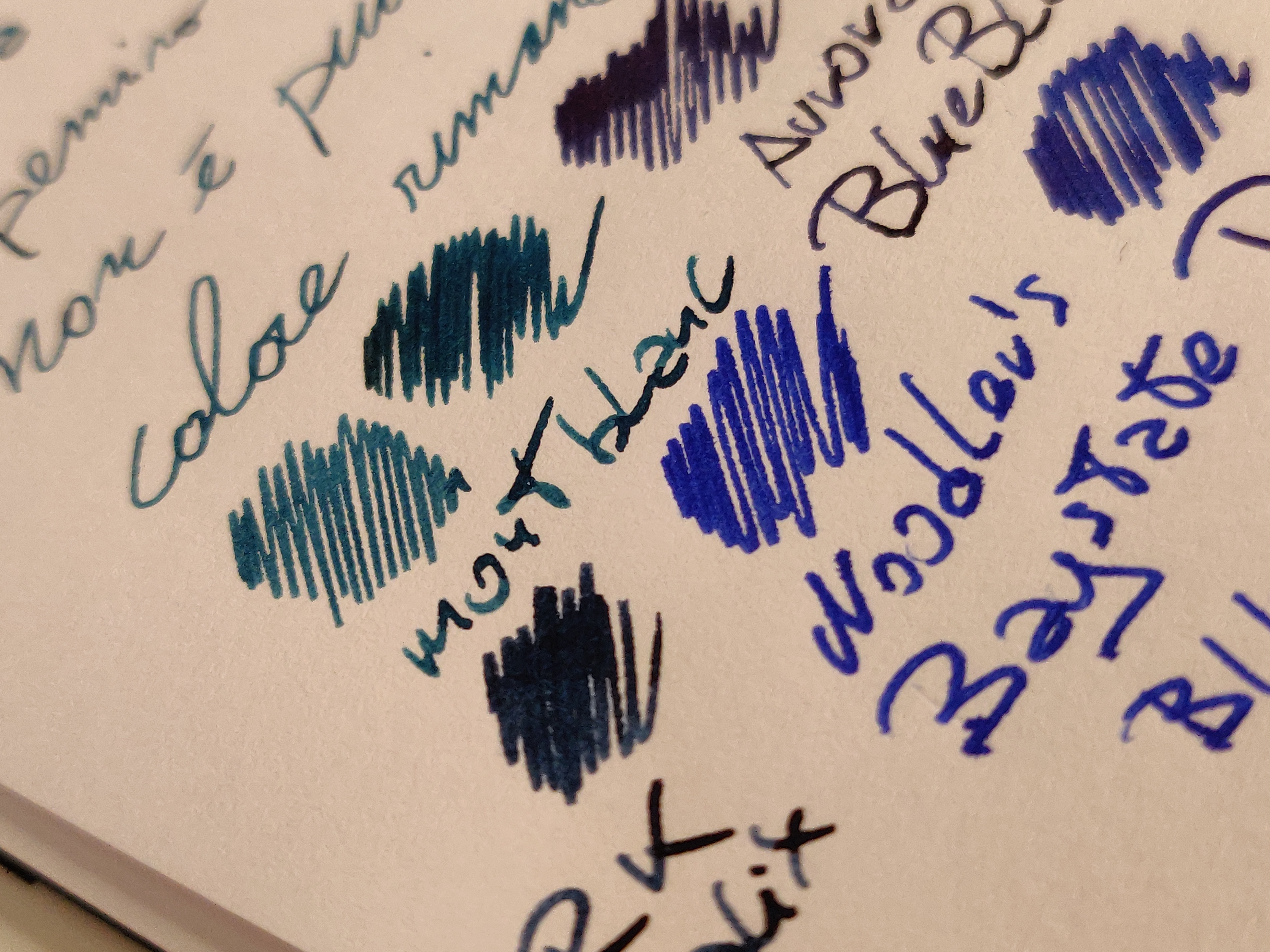 In genere i blu che virano troppo al verde non li apprezzo, scrivendo la componente blu è piacevolmente visibile, ma asciugando diventano spesso più verdi che blu e più chiari.