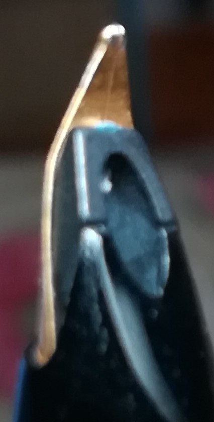 La penna è fatta come nella sesta foto in viewtopic.php?f=31&t=12631 nella sezione Catalogo>Pelikan>Pelikan scolastica (che poi viene detto essere una P120, che conferma https://www.pelikan-collectibles.com/en ... index.html) a differenza della settima foto postata lì la sezione della mia Pelikan mk10 è diversa, vista dal basso: