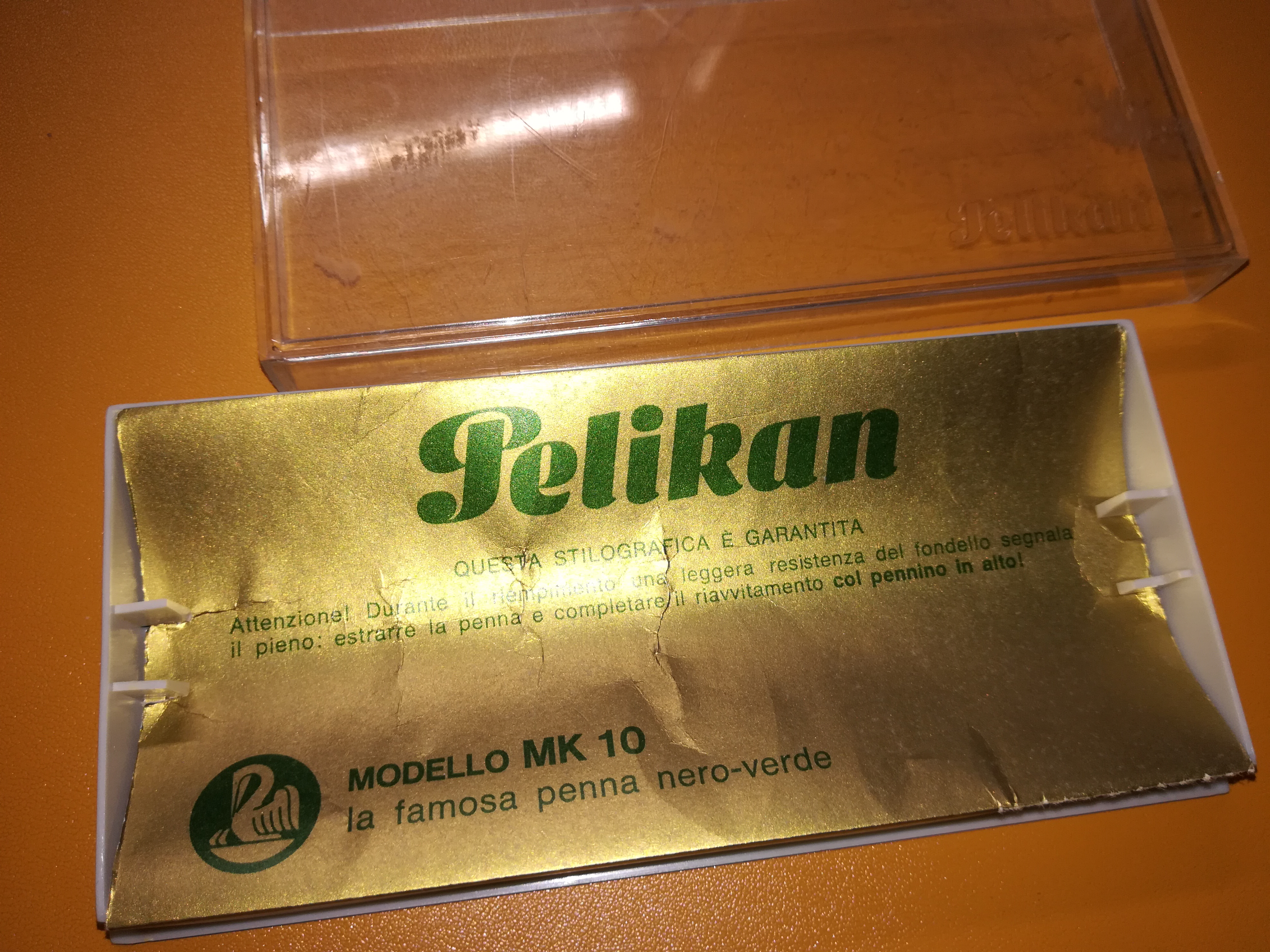 Mia madre la scorsa settimana ha finalmente ripescato dalla cantina la pelikan mk10 di mio padre -completa di scatola trasparente-, usata pochissimo e lasciata inchiostrata probabilmente da almeno 45 anni.