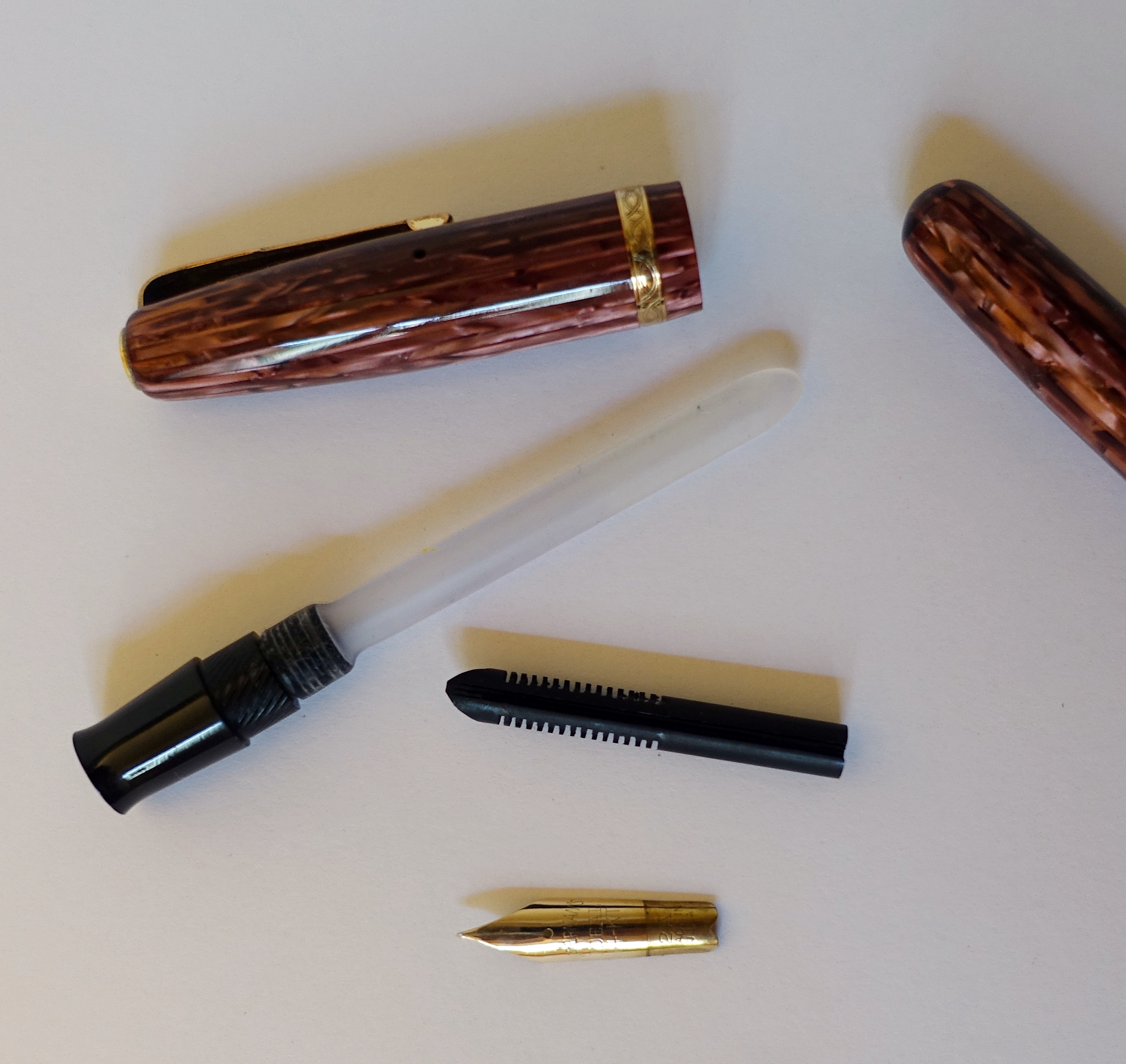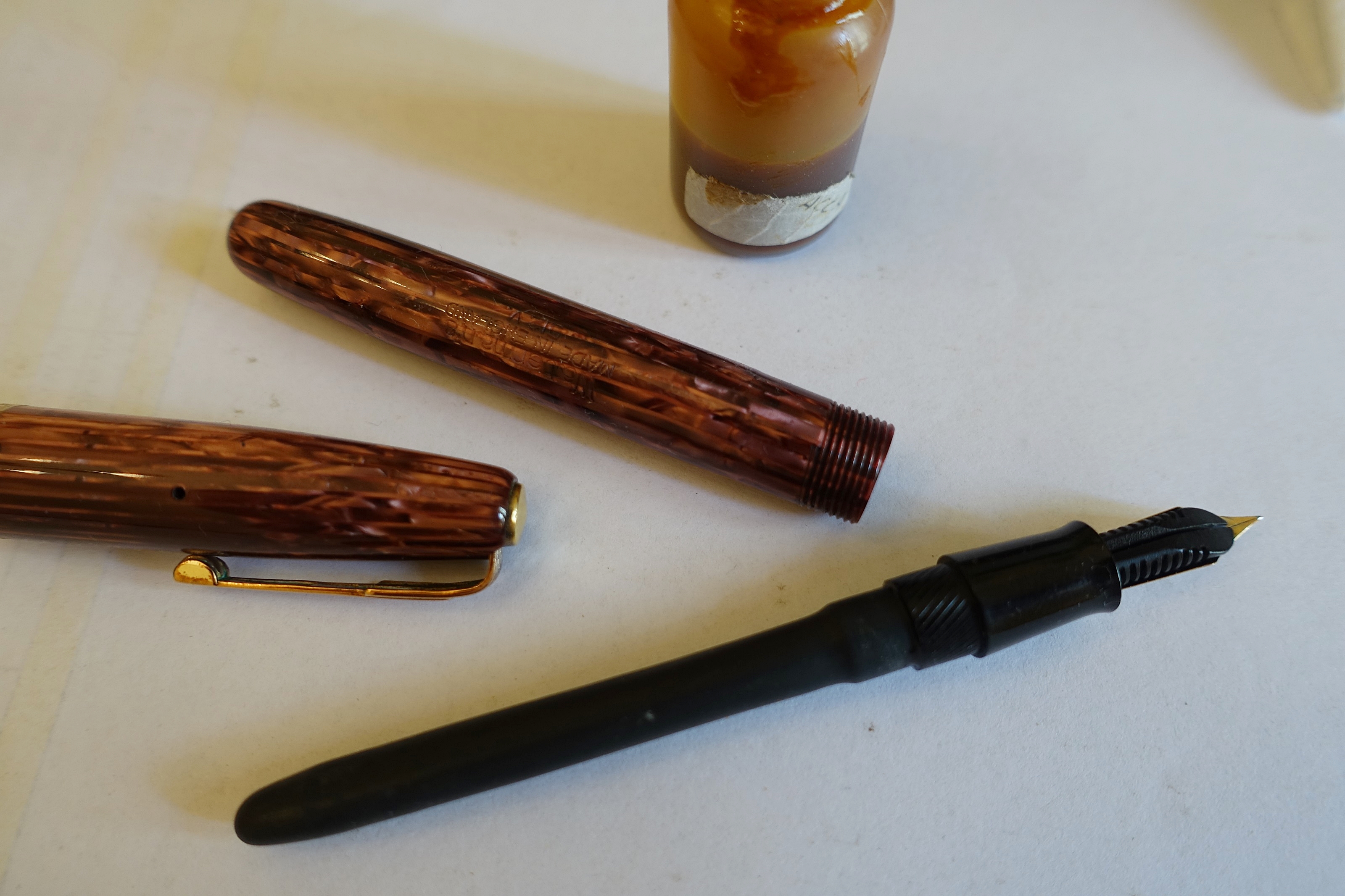 Ho un problema sulla waterman's 512V. Lasciandola carica per una notte, trovo la sezione scrittura bagnata d'inchiostro, ho creduto che l'inchiostro Diamine Florida Blue potesse essere la causa, sostituito con Il Pelikan 4001 nero, la situazione è peggiorata, ho arretrato un poco il collettore e la situazione è rimasta invariata. qualche tempo fa avevo sperimentato su questa penna un sacchetto costruito con una guaina termorestringente e non ha mai avuto questo problema, ora mi viene il dubbio del sacchetto in silicone, con il caldo di questo periodo forse potrebbe favorire strane dilatazioni. Ho anche dubbi sull'alimentatore, oltre a svariate alette, ha anche un solco molto lungo nella parte inferiore. Qualcuno ha qualche idea ???