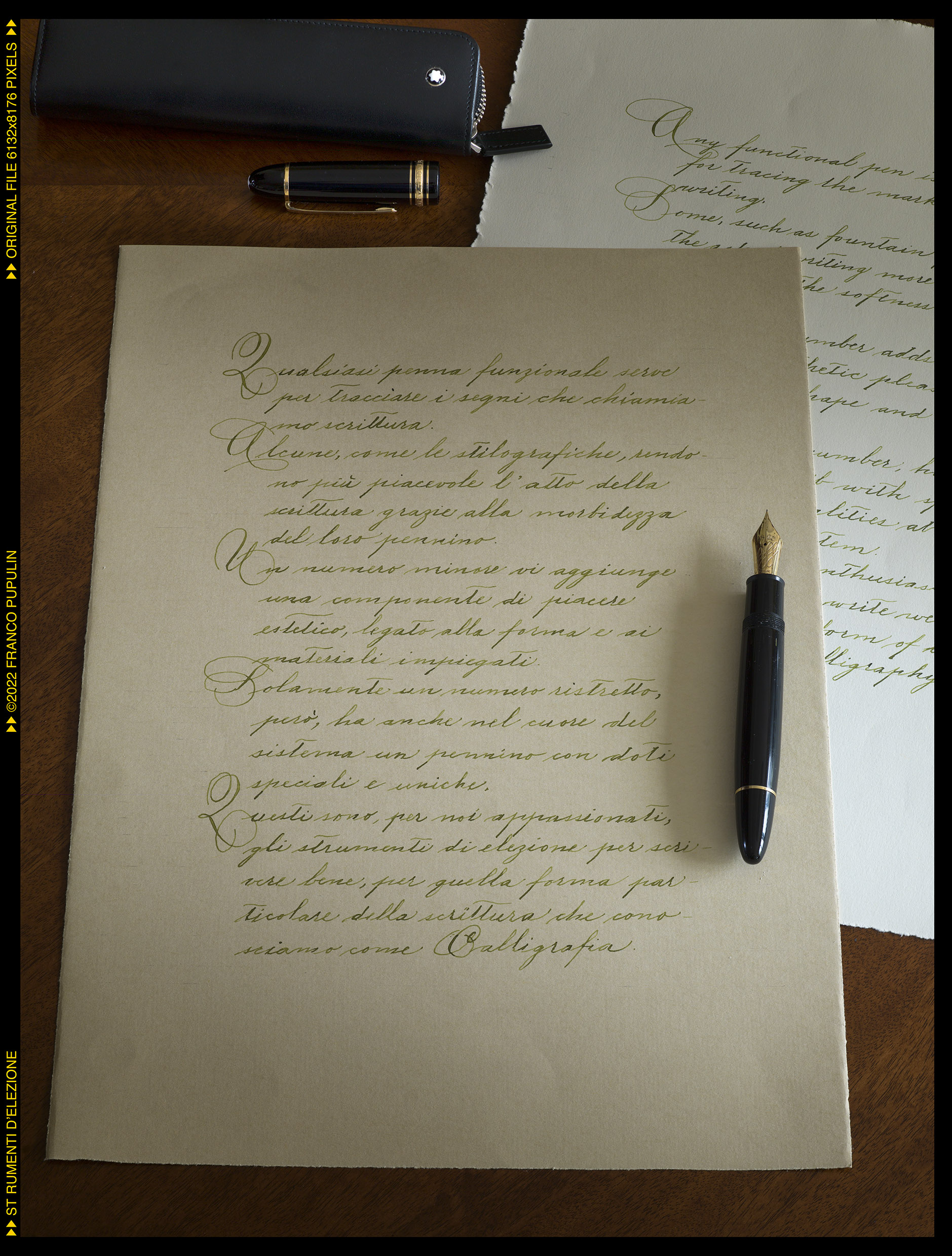 Possiedo sei Montblanc 149, ma se dovessi ricominciare da zero, comprerei la Calligraphy e una con pennino doppio largo, e punto. Se le leggi ne permettessero solamente una, comprerei la Calligraphy senza alcuna esitazione.