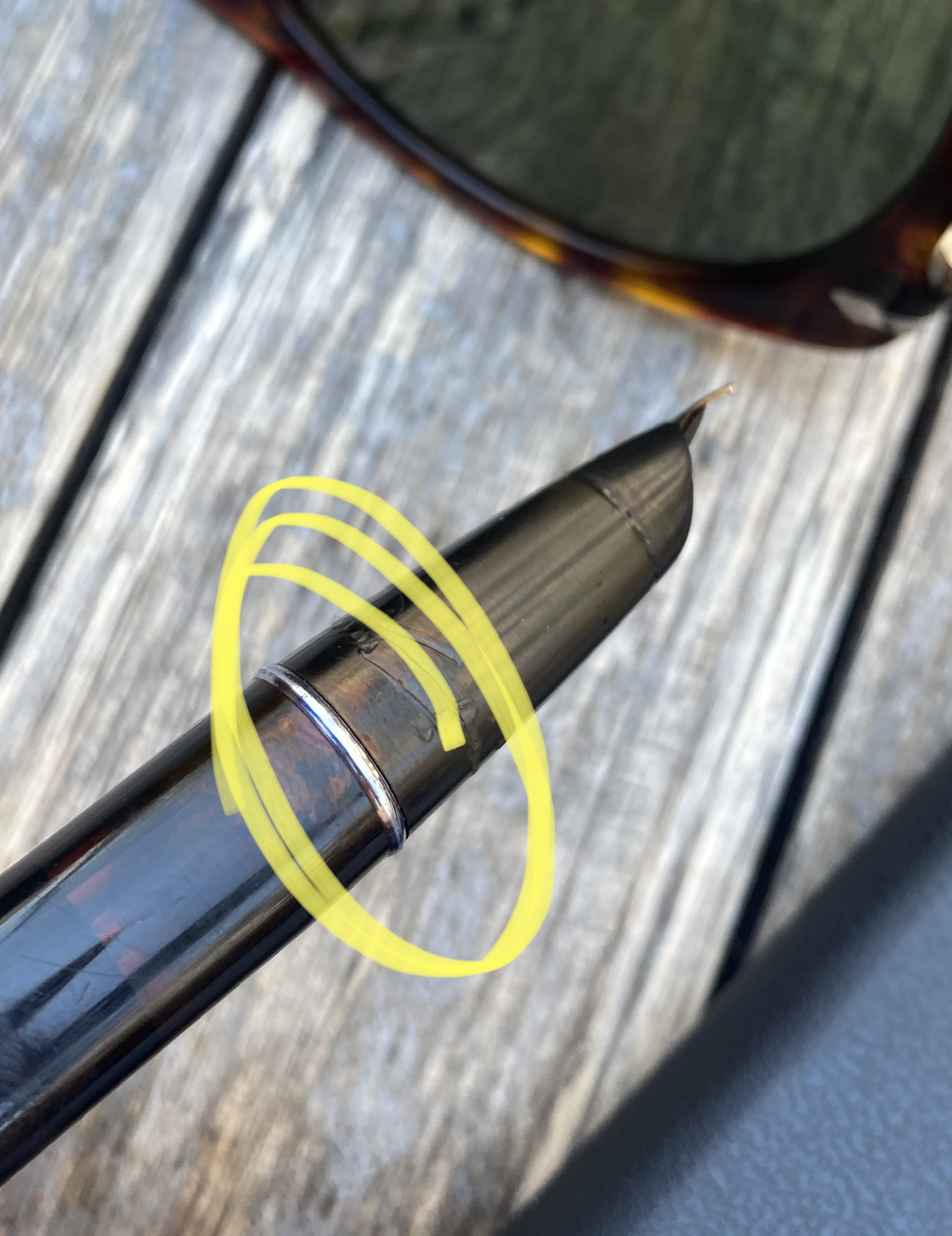 Ho notato, nell’ultimo lavaggio e rimontggio, che il pennino ha un’aletta rotta, manca un pezzettino, (non so come si chiama quella la base del pennino che ‘stringe’ l’alimentatore).