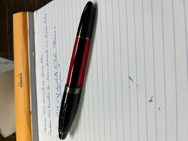 Arrivata a casa all'ora di pranzo. A parte il pennino che è come un chiodo e mi ha deluso, la penna non ha tenuta d'inchiostro: l'ho portata in giro nell'astuccio e il tappo si è allagato. Ho pulito tutto, riprovato con acqua e appena l'ho scossa ha perso acqua dal pennino. Continua a farlo. Non so se è previsto il rimborso