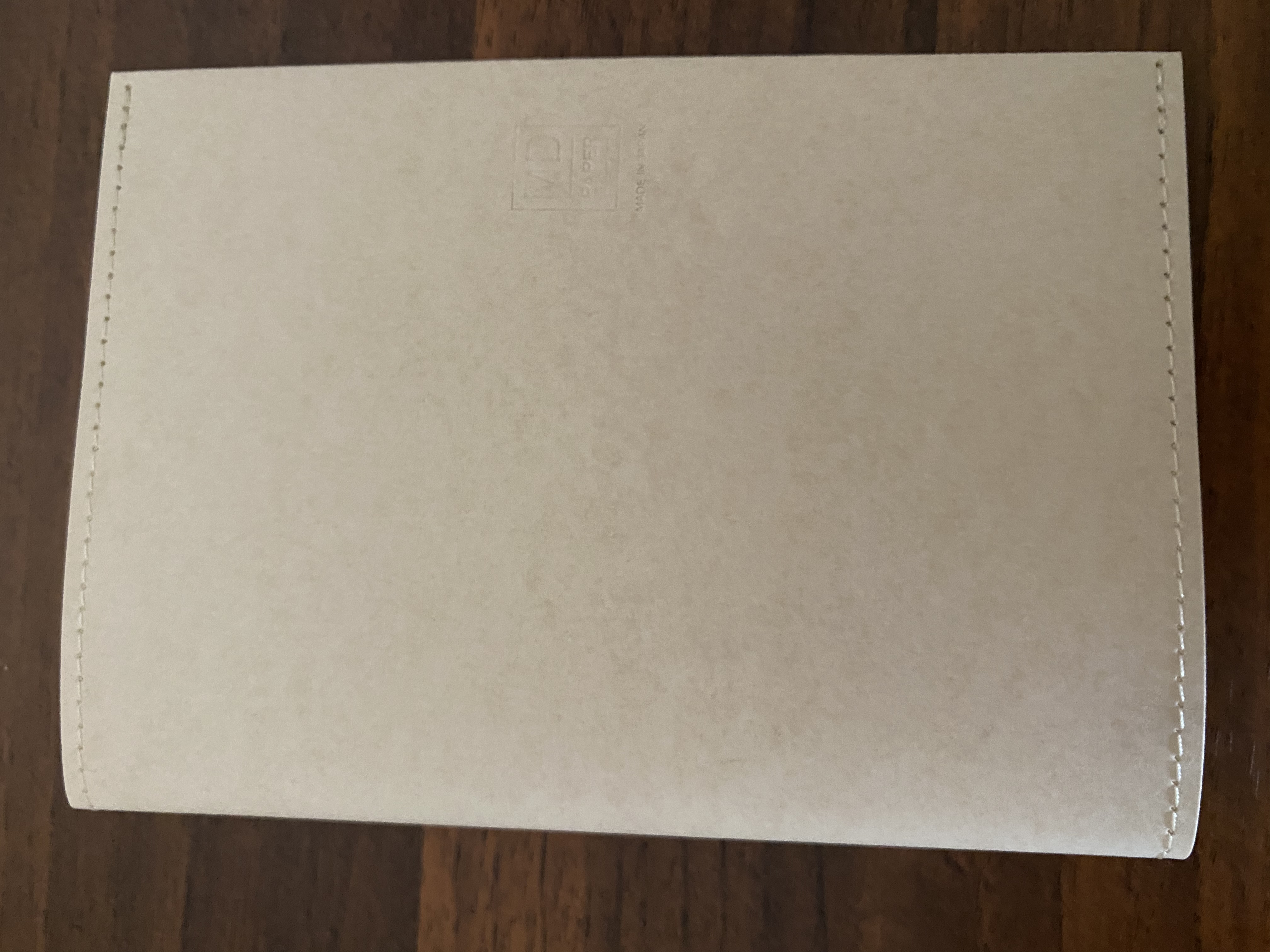 La seconda è in cartoncino, ha un colore cipria intenso, cuciture che la fanno sembrare pregiata, tipica ‘fuffa’ giapponese…