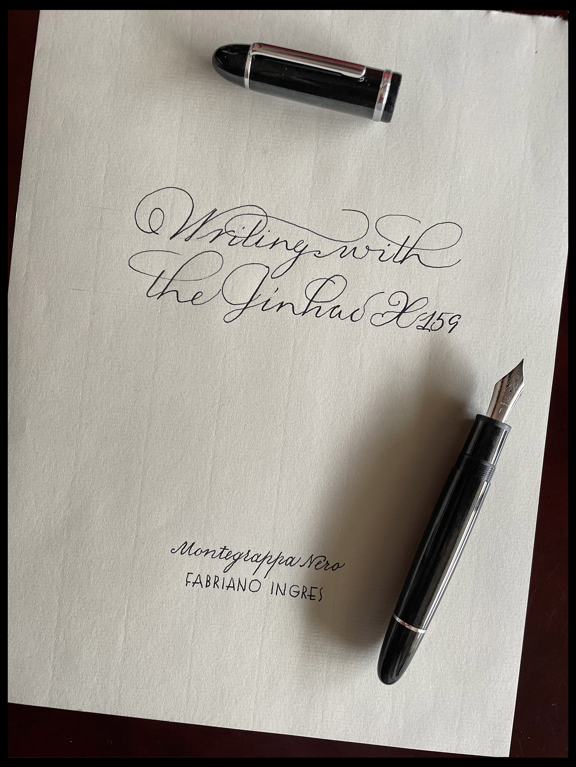 Interessante recensione, soprattutto perché chi la ha scritta maneggia (impeccabilmente direi) la penna ispiratrice. La vecchia 159 non mi ha mai interessato proprio per la sua anima possente, invece questa mi pare più riuscita, a leggerne, perché non la posseggo. Di Jinhao ho una x450 Blue Twist che dopo qualche anno è ancora come appena acquistata e che ha un pennino a punto, ma che mi sembra un po' "viscido", e una 51a Coffee che si comporta egregiamente. Sarò stato fortunato, ma non posso lamentarmi dei pochi soldi spesi per averle. Detto questo, la x159 mi sembra un riuscito homage, con la particolarità del pennino numero 8.