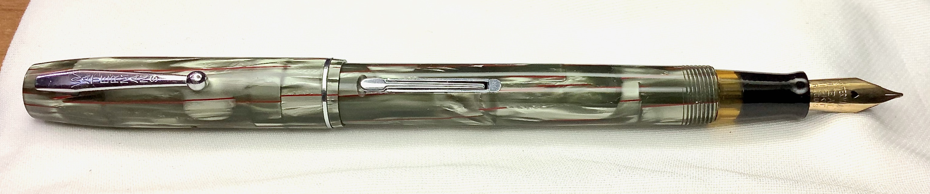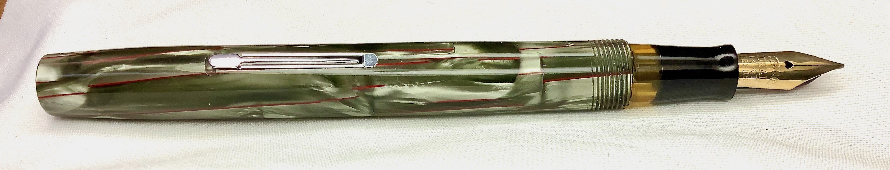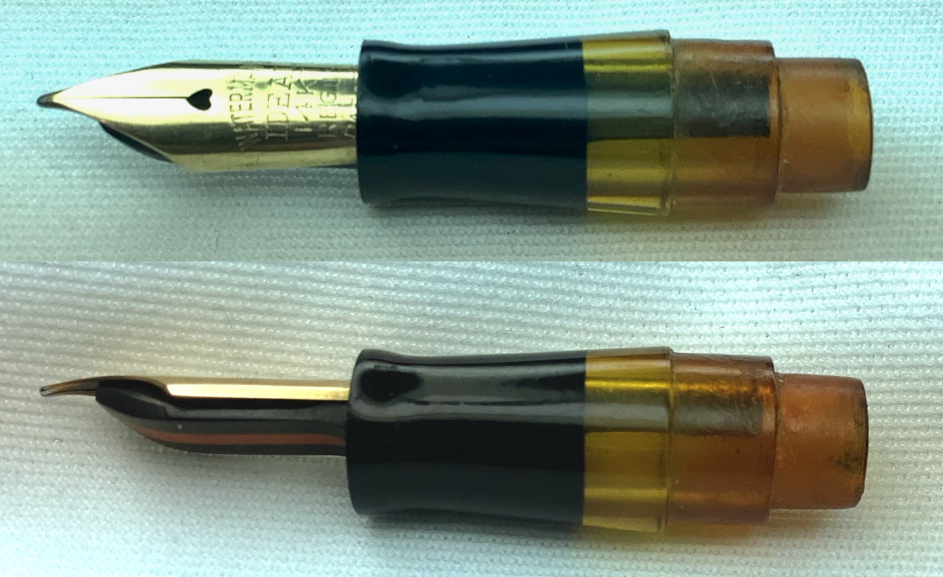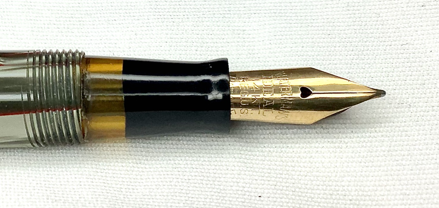 All’epoca credo che tutte le penne prodotte da Waterman avevano i pennini in oro, i grandi marchi interruppero la produzione dei pennini in oro solo durante la guerra e non dappertutto. Nello specifico credo che negli Stati Uniti sia continuata ininterrottamente. Sarebbe interessante vederlo in azione.