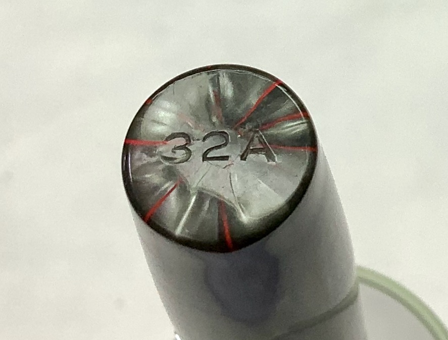 Sul fondello è riportato la numerazione del modello (32A) . E' da notare (da ciò che ho potuto vedere) che le 32A con cappuccio chiuso sono del tutto uguali ad una versione di penne dello stesso periodo (derivanti dalla serie Nr. 3) , denominate Thorobred : identica livrea , colorazioni , fermaglio e levetta cromate , unica differenza la dicitura Thorobred sul fondello (in luogo della dicitura 32A) ; a penne aperte invece, sulla Thorobred si nota l'assenza della finestra trasparente per l'ispezione del livello d'inchiostro.