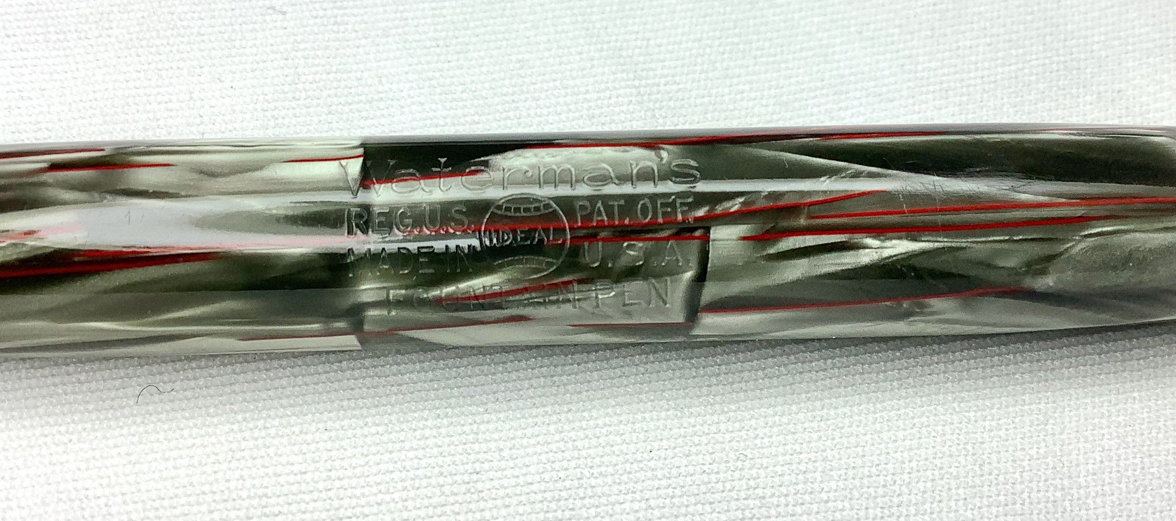 Sul fusto è impresso il logo Ideal sotto la scritta Waterman's , il solito Reg.Us Pat.Off. , Made in U.S.A. , e Fountain Pen ad indicare che è una stilografica e non un pennarello indelebile.
