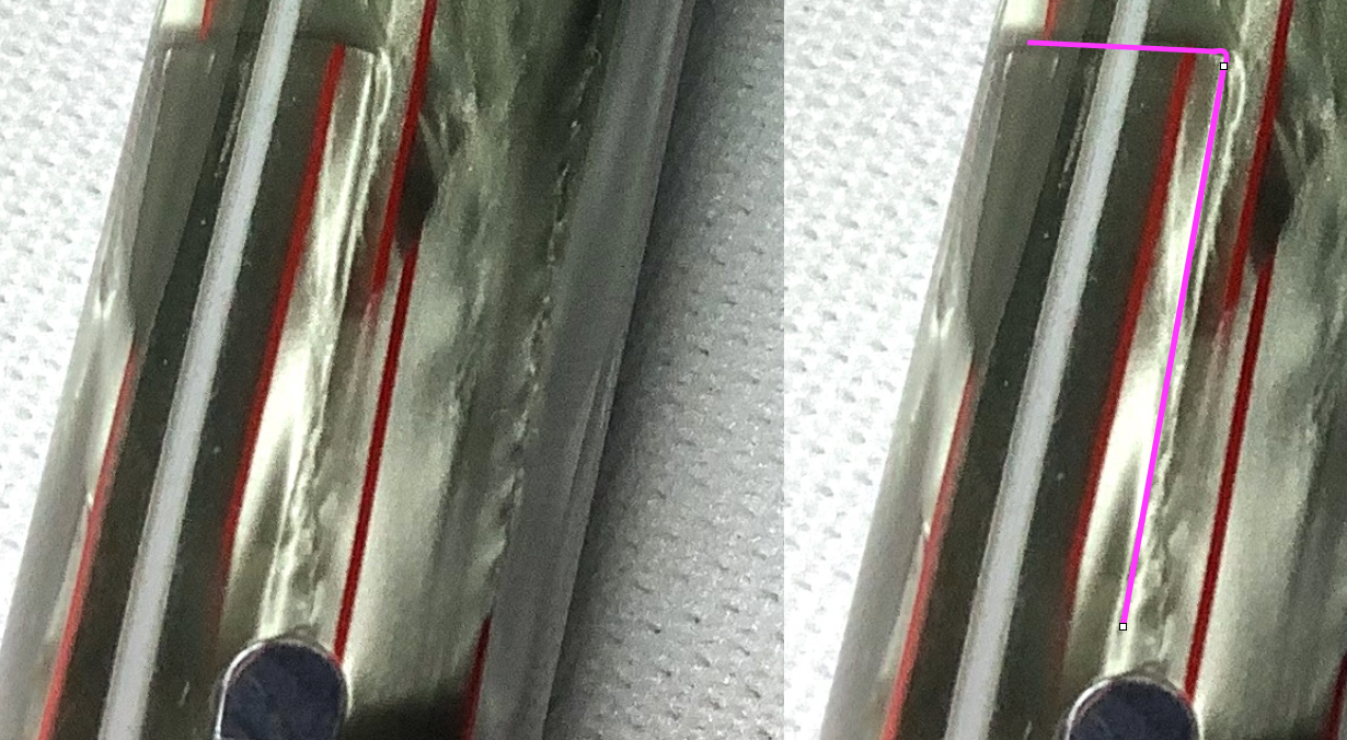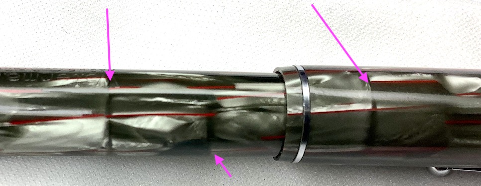 Un particolare che ho notato solo adesso: il cappuccio parrebbe fabbricato il celluloide fasciata e non dal pieno (si può vedere la linea di giunzione immediatamente sotto la linea tratteggiata blue)