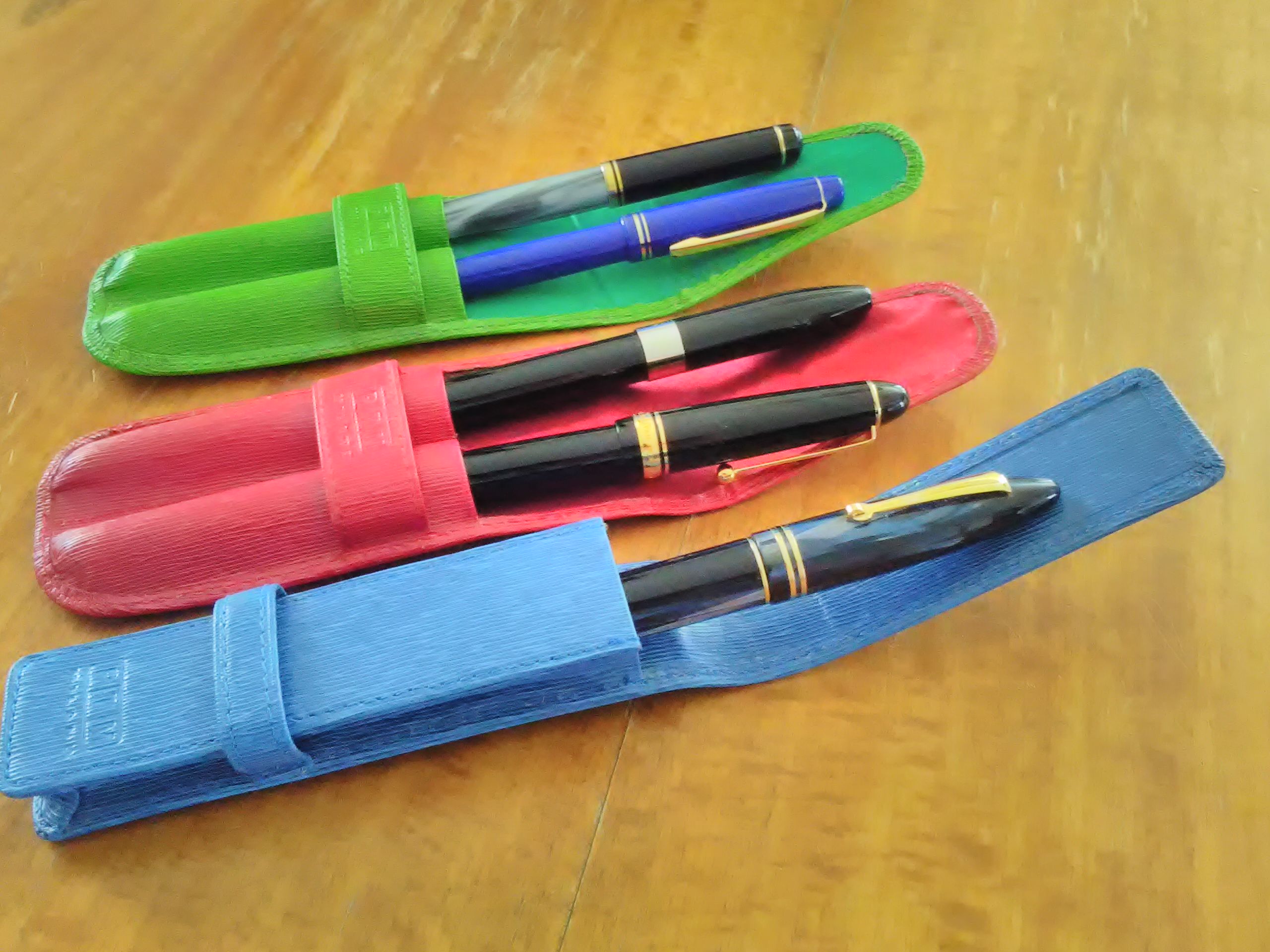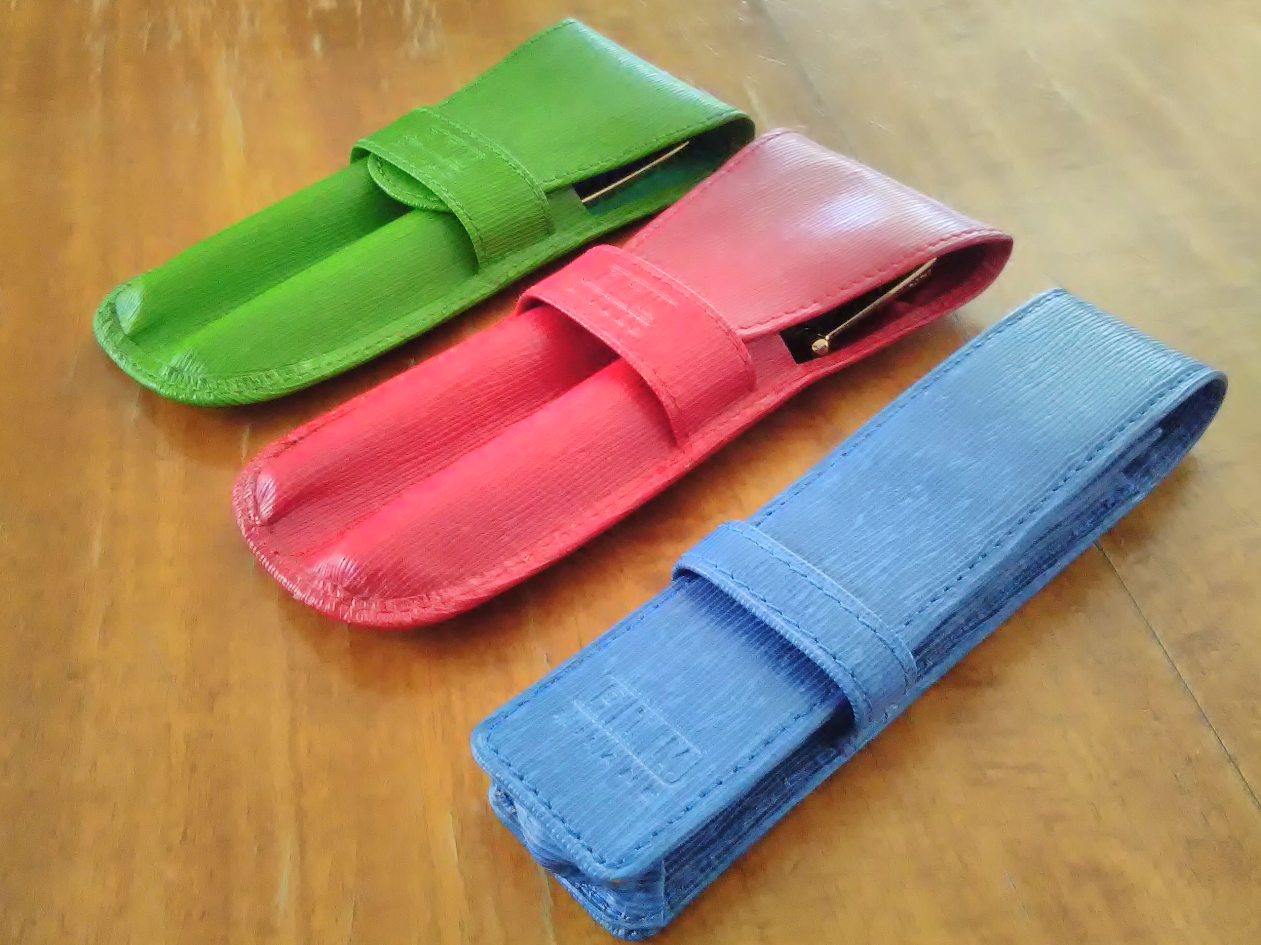 le sei penne da lavoro le tengo invece in due portapenne tripli e magnetici di Lamy che ho sempre in borsa. Probabilmente c’è di meglio, ma questi costano poco e fanno il loro lavoro.