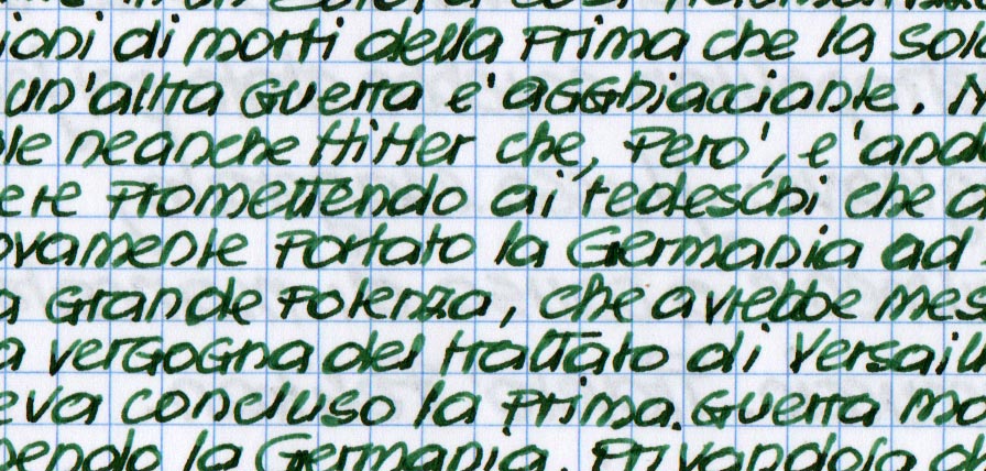 Finisco la carica, lavo e ripongo la Pelikan e tiro fuori magari una Aurora 98, metto l'inchiostro, inizio a scrivere e torna fuori la grafia da arto avicolo....