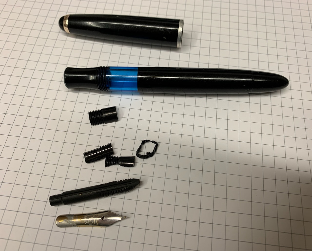 Dietro ad essa stava un collarino di plastica filettato che dovrebbe tenere insieme pennino e alimentatore come sulle Pelikan.
