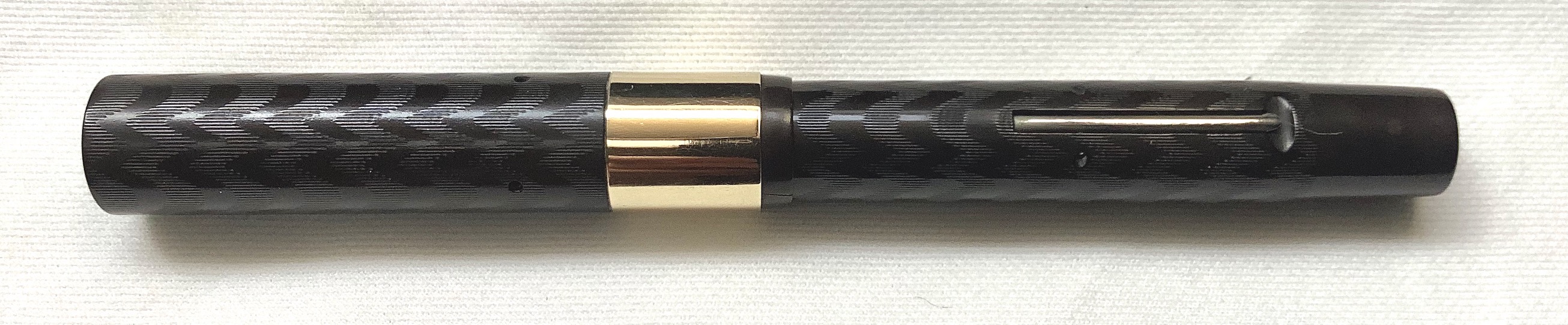 Per riferimento, questa stilografica Hallmark in ebanite cesellata sarebbe l'esatta copia della Karker Pen Model 34(S) , ad eccezione del cappuccio con fermaglio fisso e di una modesta lavorazione a sbalzo sulla banda in metallo dorato, presenti solo sulla Model 34(S).