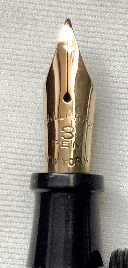 Sul pennino in oro non è visibile alcuna indicazione della caratura, ma è indicato il marchio HALLMARK PEN ed il numero 3 quale misura, ed in basso l’indicazione NEW YORK.