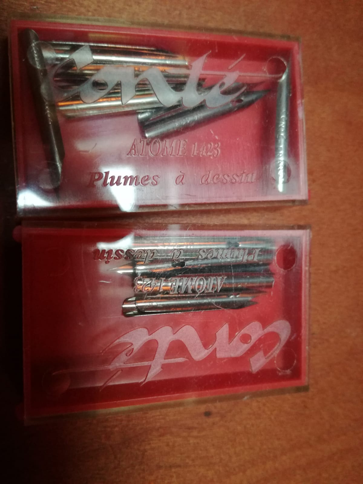 Plumes a dessin significa pennini per disegnare. Dovrebbero essere pennini che possono andar bene anche per qualche stile calligrafico (dipende se rigidi o flessibili in punta)