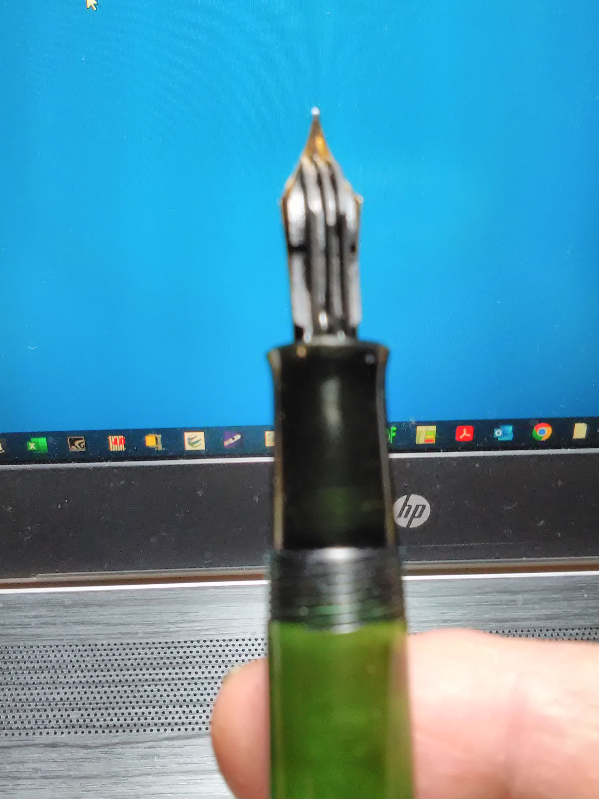 grazie per le foto, Modello60. il pennino è come quello della penna che sto puntando, i pulcini sono duea, l'incisione sul pennino è identica e seppur sbiadito il nome Pelikan sul fianco del cappuccio s'intravede.