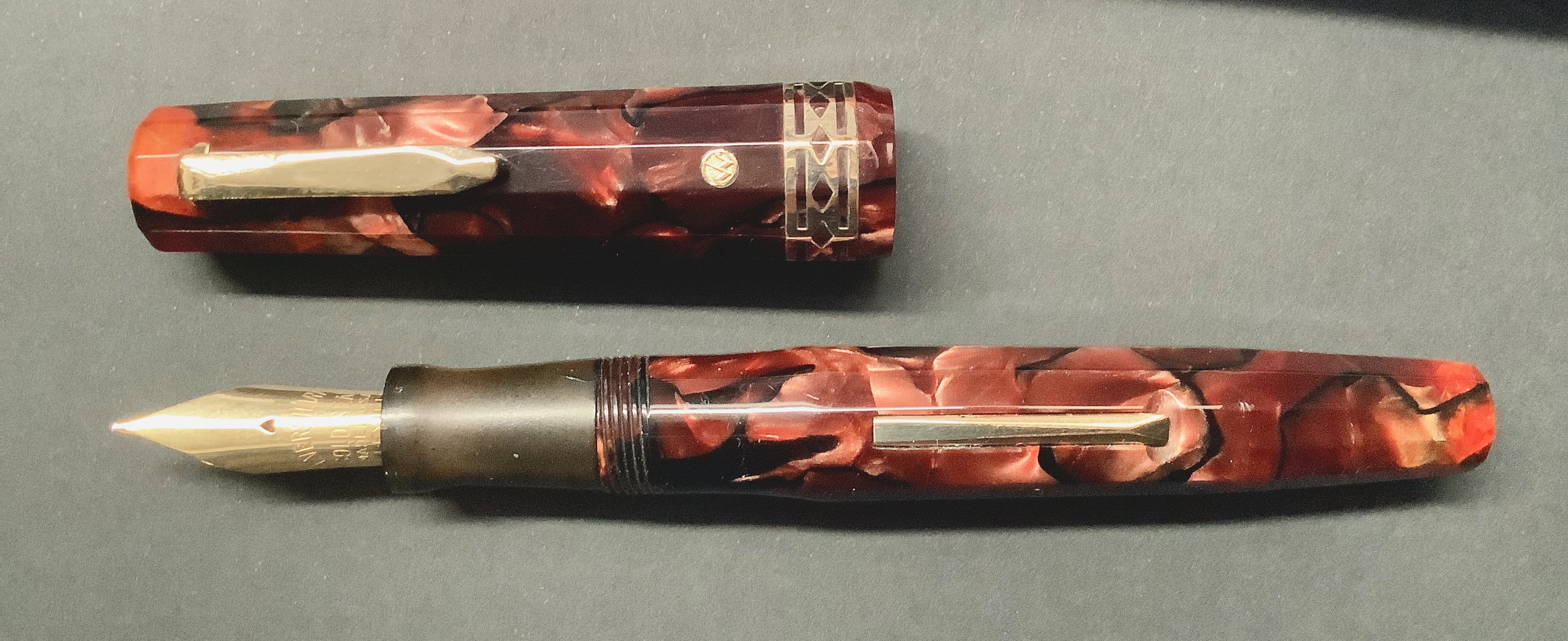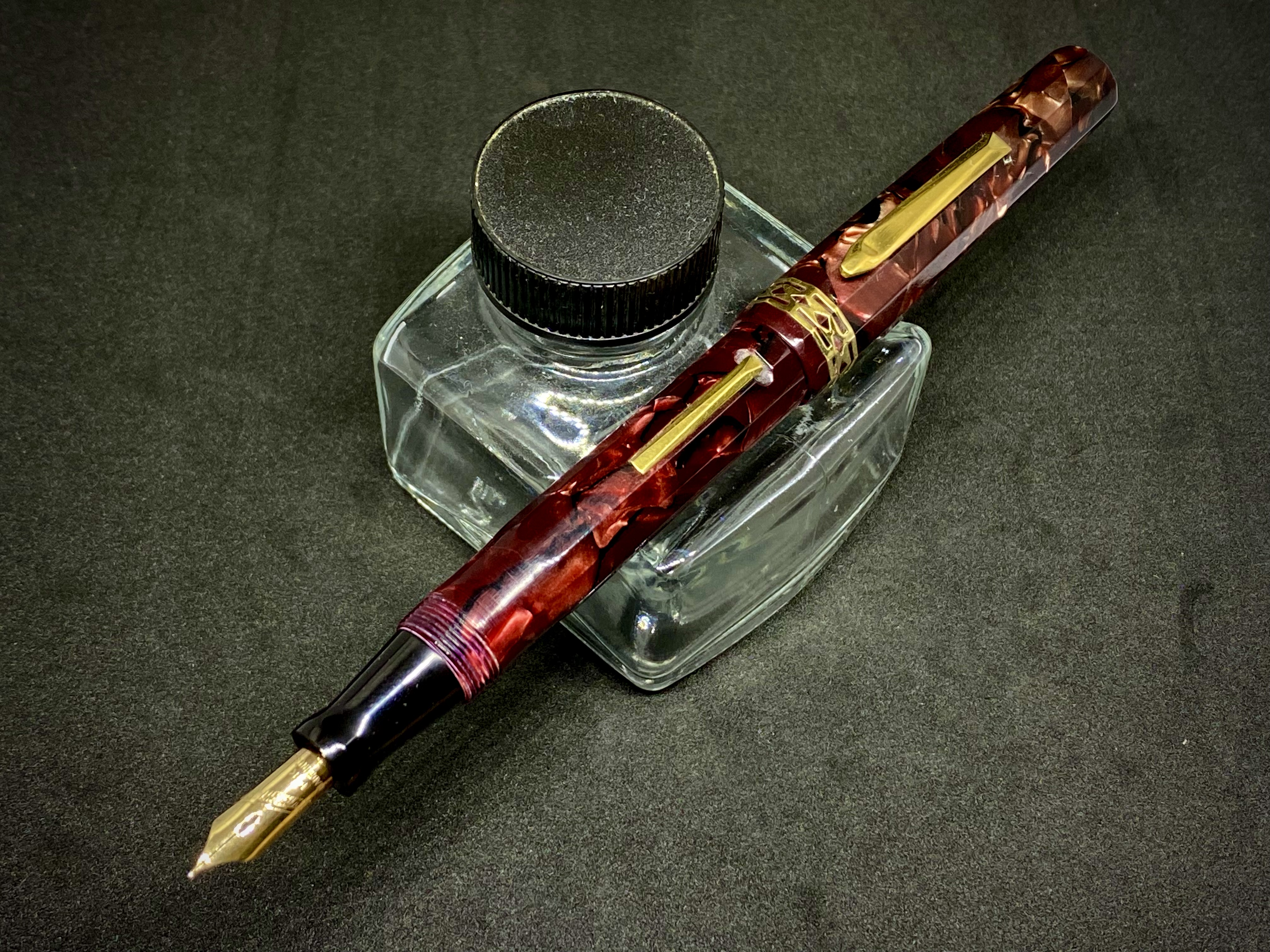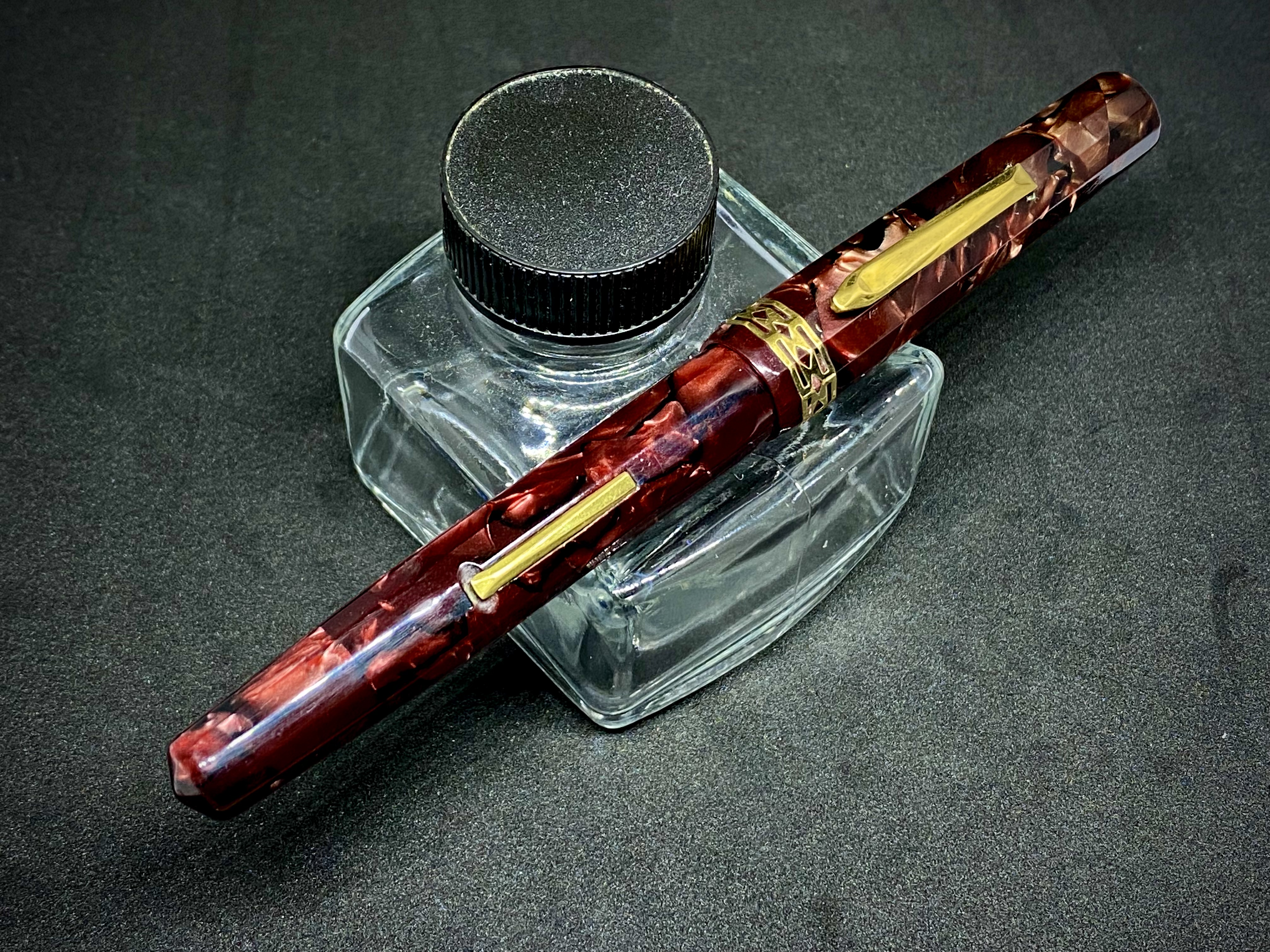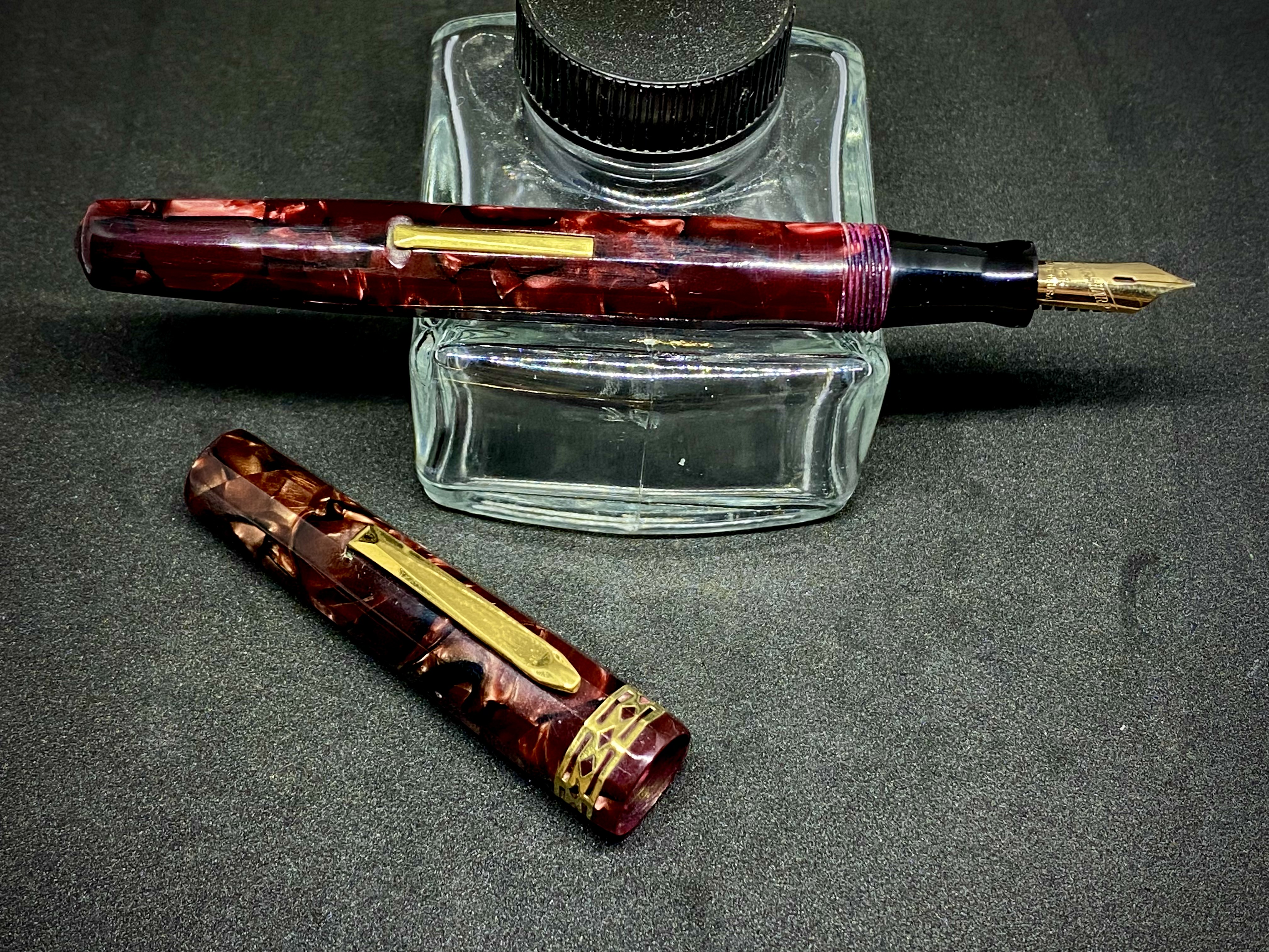 Sono due penne, questa e la Kashmir, tra le più belle che ho mai visto. Ecco una Morocco Red nella versione Popular Priced, fortunatamente uno dei pochi esemplari in circolazione senza un principio di cristallizazione, almeno visibile.