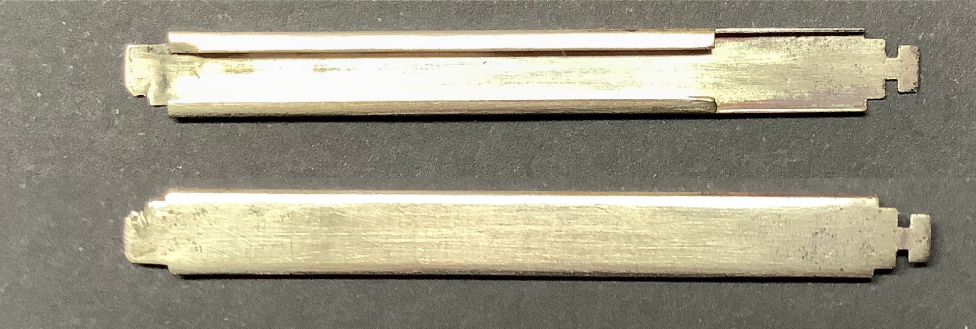 La barra (fronte e retro) interna che permette la compressione del sacchetto d'inchiostro (sembra essere più lucida di qualche ottone di casa mia...) .