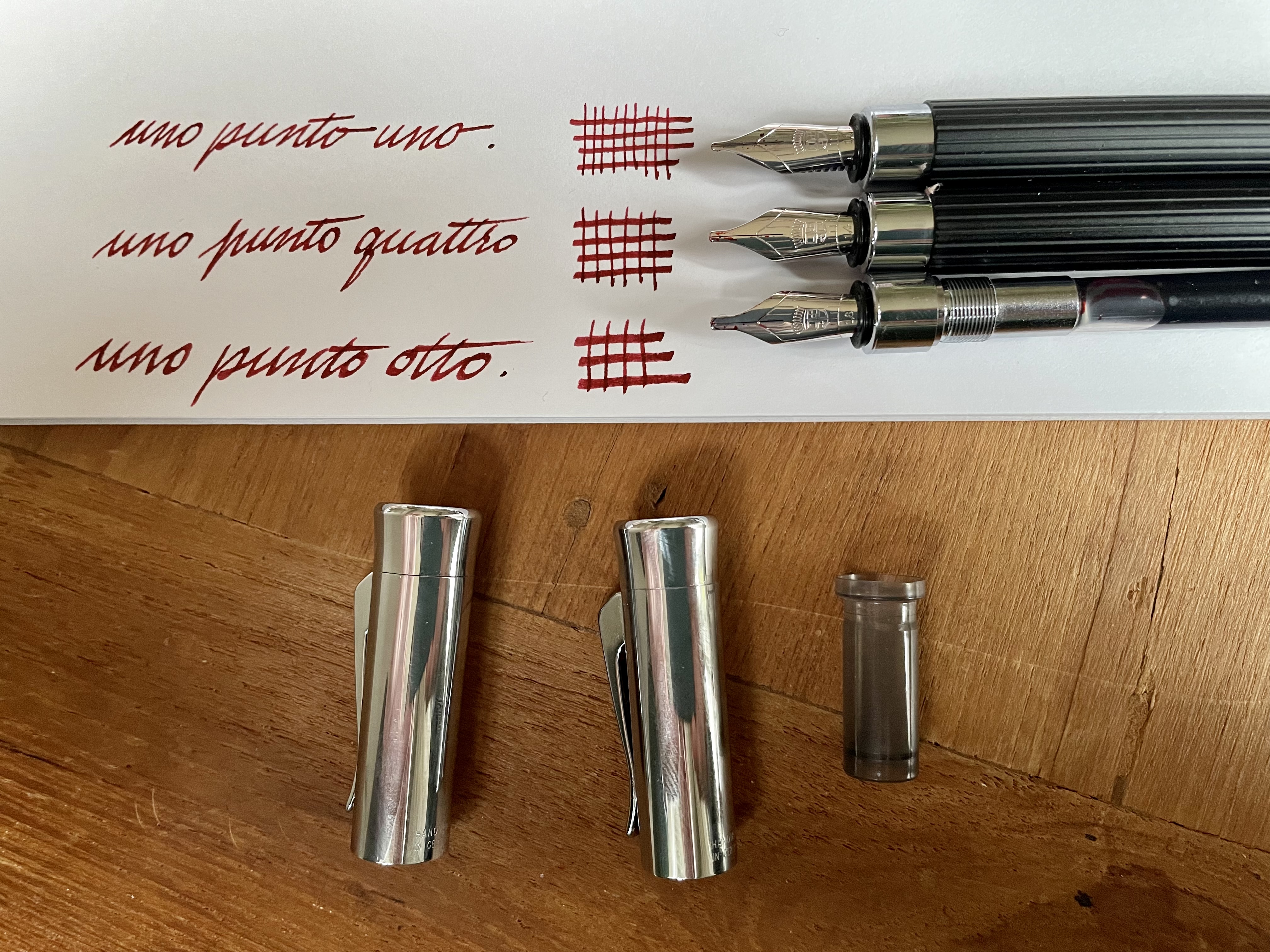 Il fatto che i pennini, nonostante il tratto così abbondante, siano sempre ben alimentati anche nei tratti veloci, non è da sottovalutare. Con il set Lamy, ad esempio, è impossibile scrivere con velocità normale e un pennino che non sia il 1,1mm