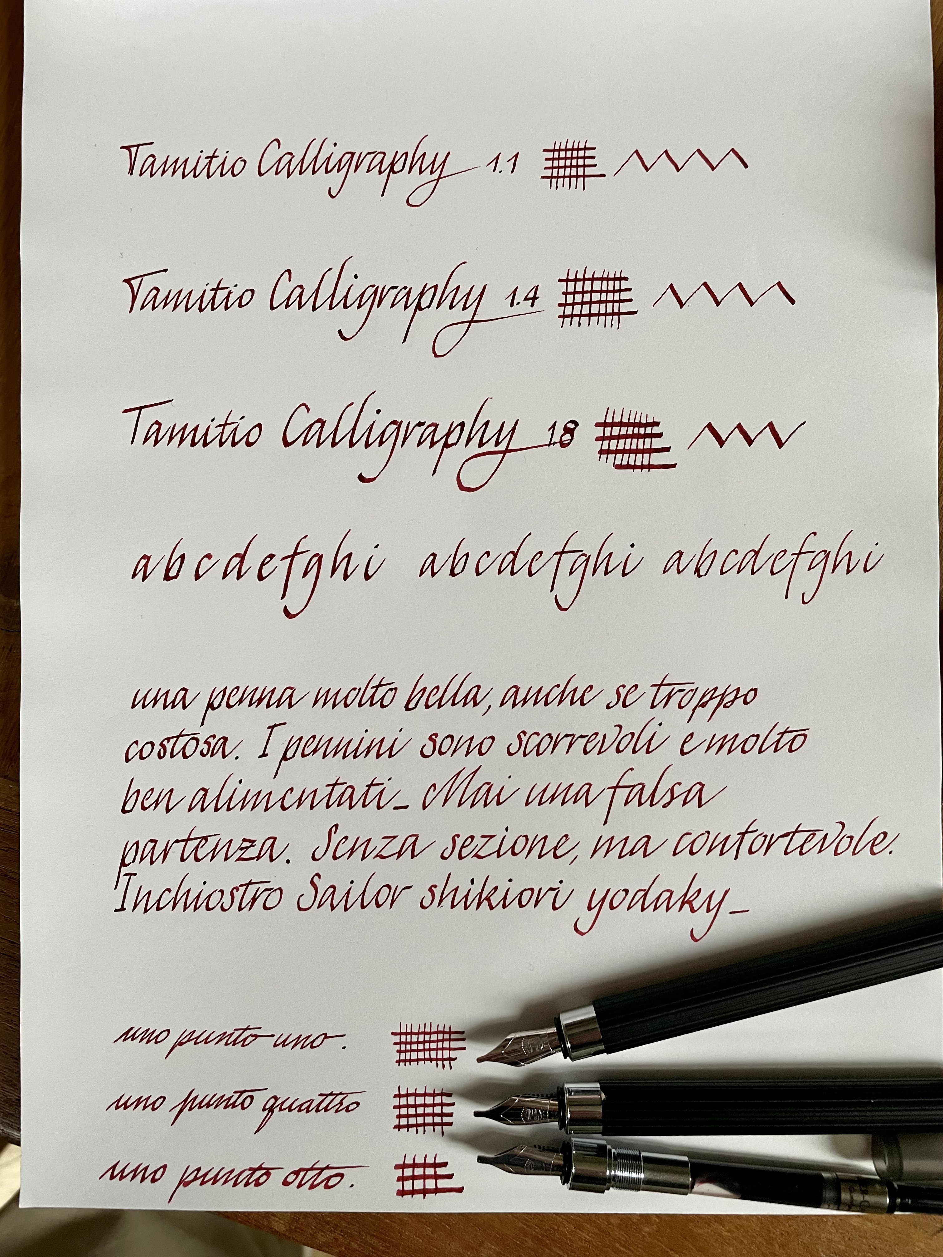 Ho diverse penne stub e italiche: il set della Plumix, le Kaweco e le Lamy. A rendere molto piacevole la Tamitio sono il flusso e la scorrevolezza, è davvero una penna divertente.