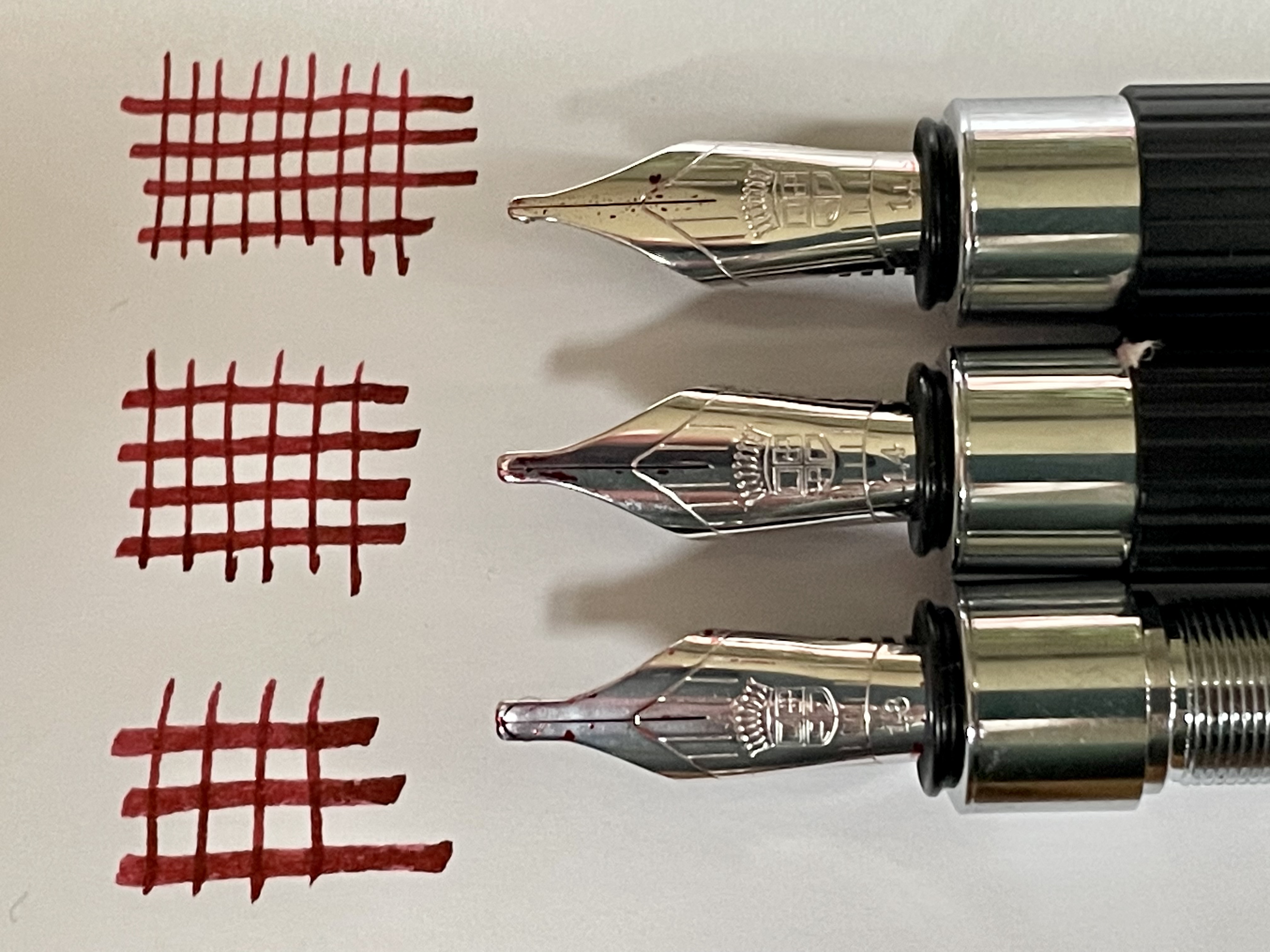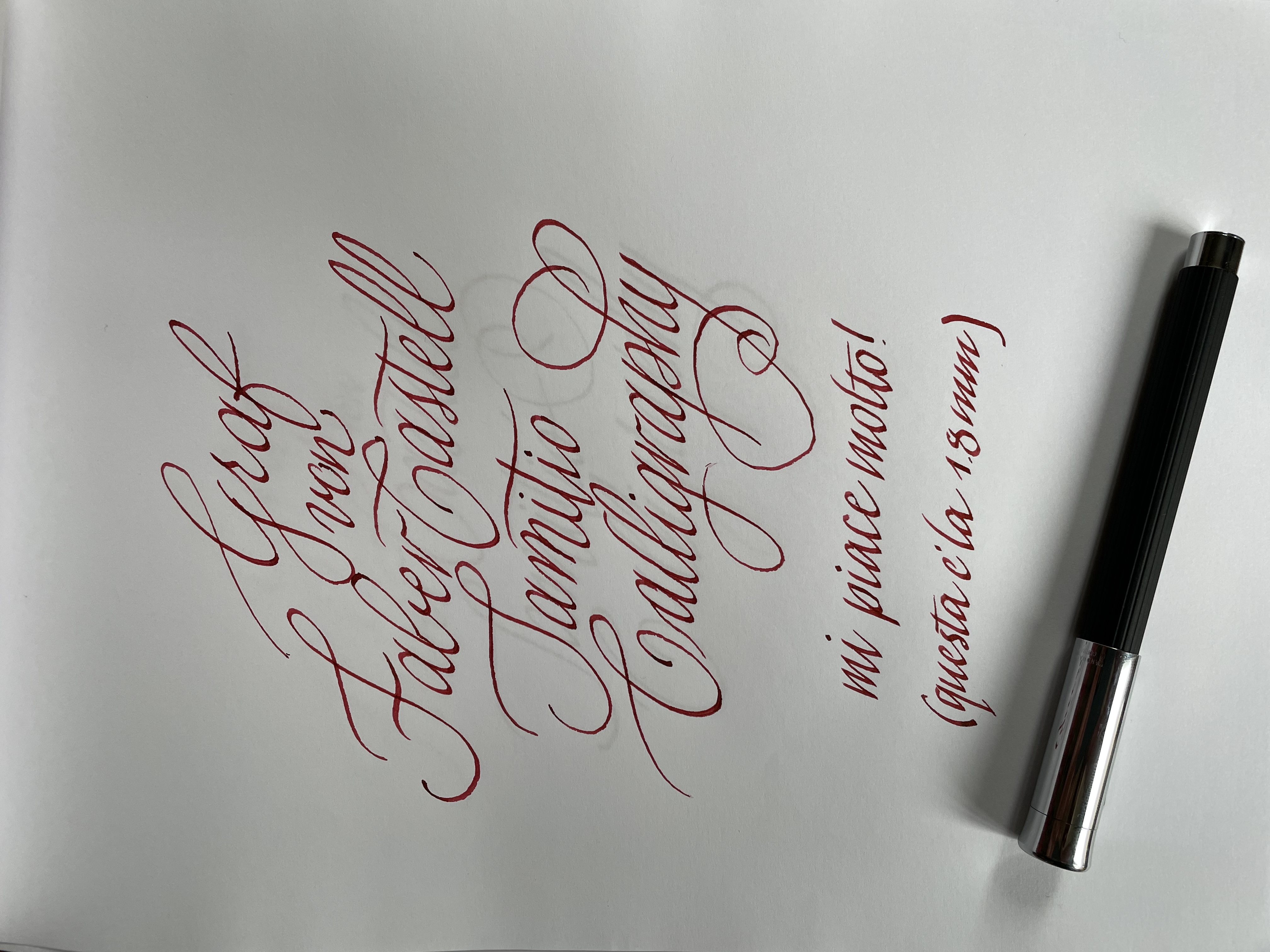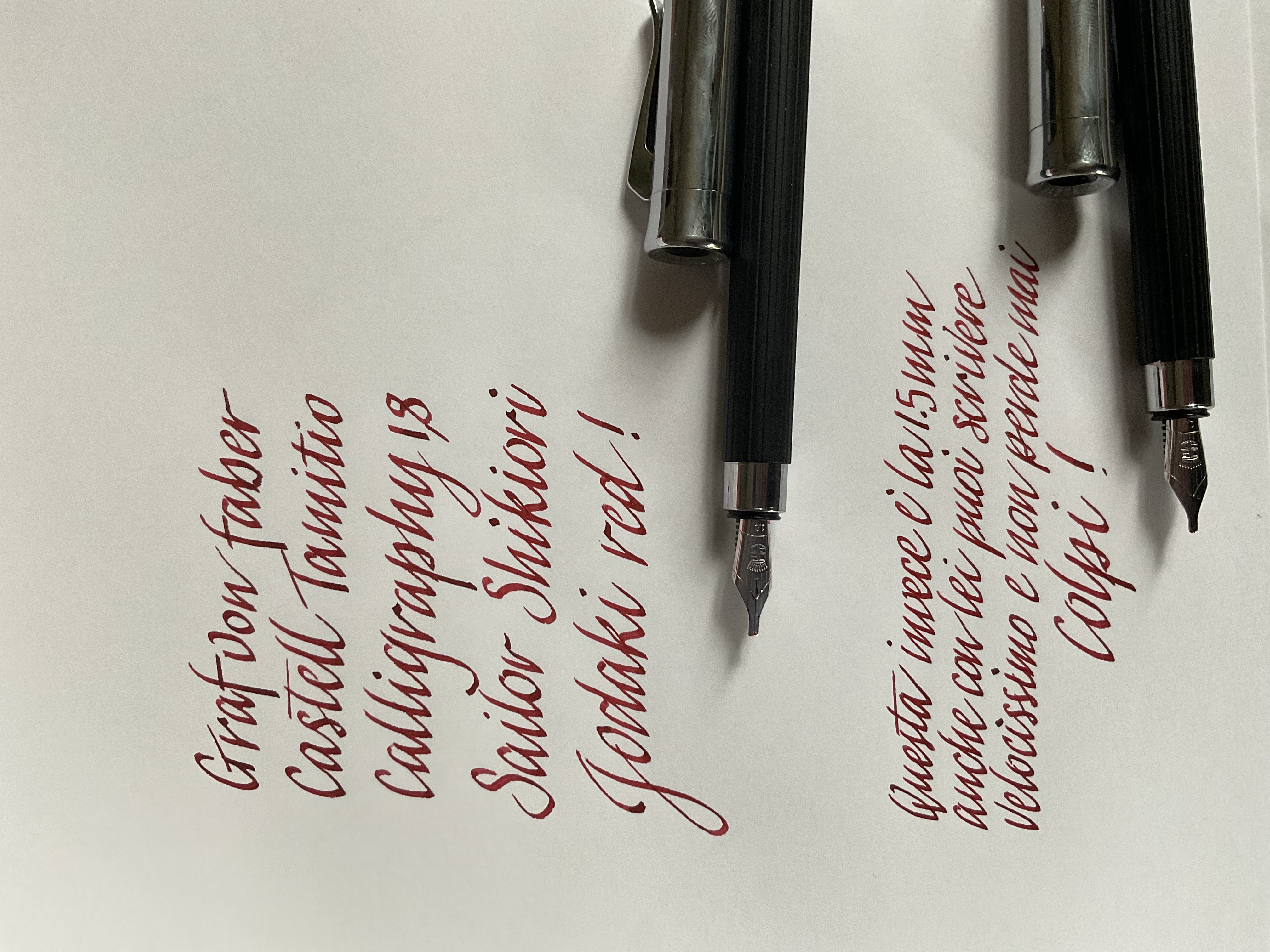 La costanza e abbondanza di flusso é la differenza principale che ho trovato rispetto alle altre stilografiche con stub/italici molto grossi. Questo si traduce anche in una significativa differenza di colore dell’inchiostro, che con le lamy a parità di pennino è particolarmente “tirato” e quindi più trasparente.