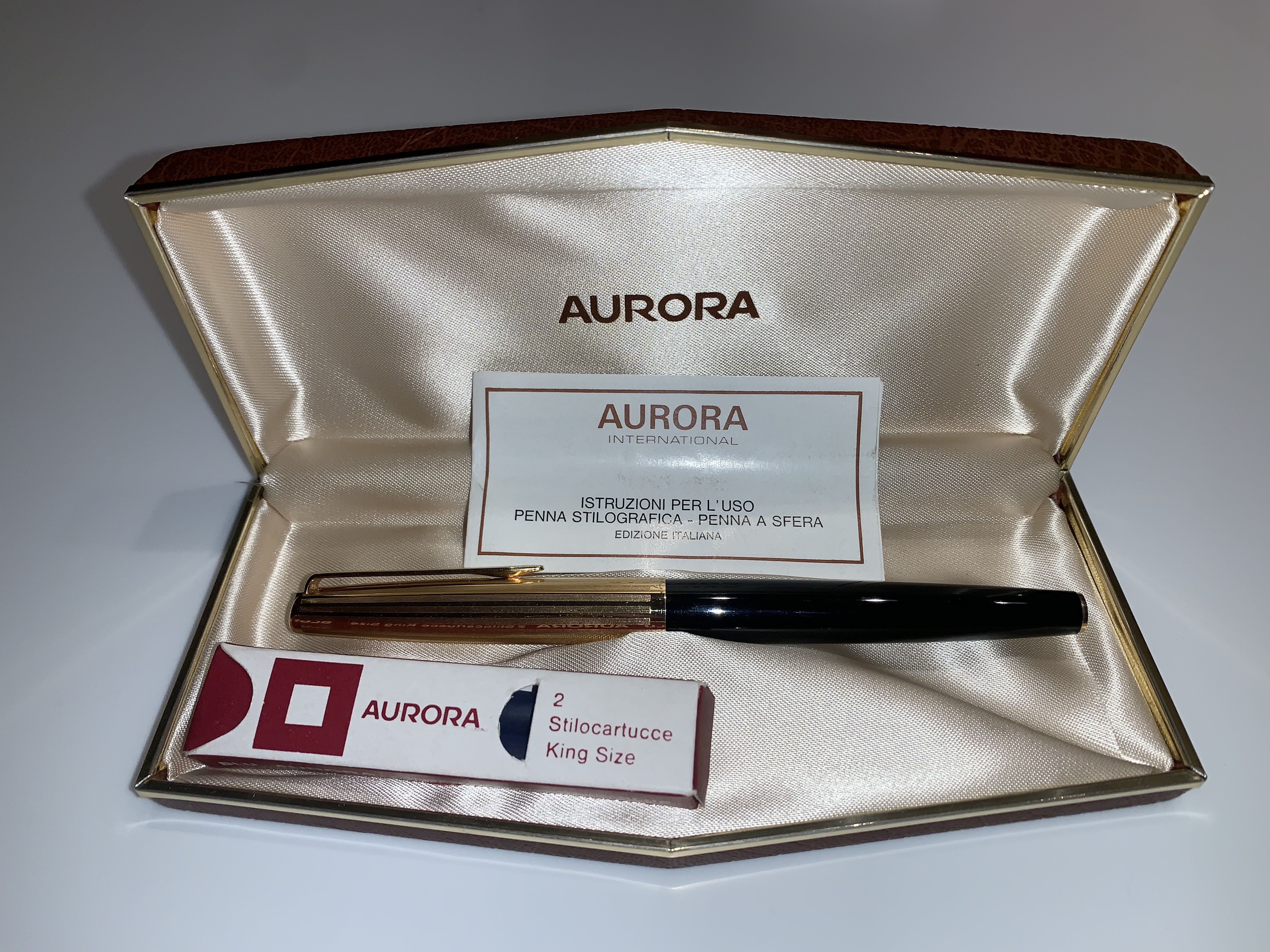 dani88 ha scritto: martedì 3 gennaio 2023, 17:56 Sono abbastanza sicura che scatola, cartucce e foglietto di garanzia Aurora siano coevi, però sarei curiosa di conoscerne la datazione e dove trovare la dimensione del pennino.