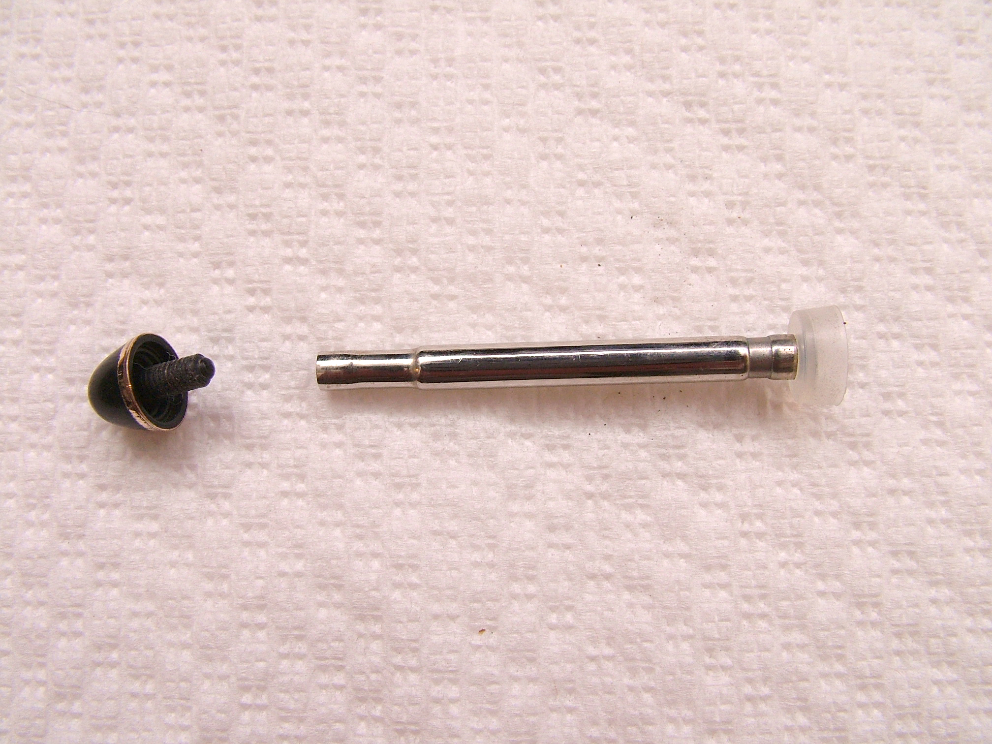Una volta trovato il danno, in genere la plastica sul pistoncino deteriorata, si effettua la riparazione sostituendola con un sughero modellato ad oc poichè il ricambio non esiste più.